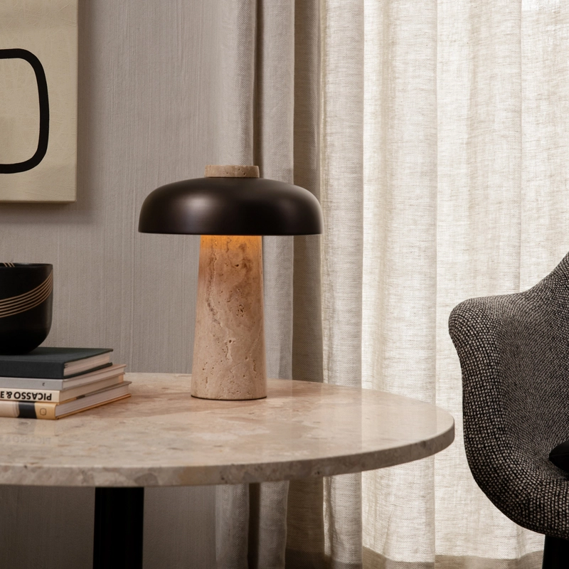 Menu projette une lumière chaude sur une table de chevet ou une lumière tamisée sur une étagère, ce qui en fait une solution élégante et de caractère pour une multitude de besoins d'éclairage.