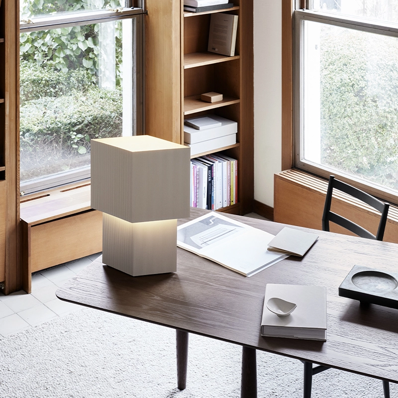 Romb est le résultat d'expérimentations de Broberg et Ridderstråle avec un carton ondulé qu'ils utilisent alors beaucoup lors de la modélisation et du développement de projets d'architecture. La forme, un losange, émergea rapidement et s'est divisé en deux formes; l'une plus grande que l'autre, qui projette une lumière directe intéressante vers le haut mais aussi indirecte vers le bas, sur la base de la forme. La pièce fonctionne bien sur les espaces étroits comme les étagères ou les appuis de fenêtre, et a une forte présence sculpturale. Editée par Pholc, la lampe à poser Romb est réalisée en acier embouti sur mesure avec des bords sans soudure et une grande attention aux détails.