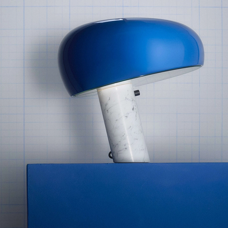 Largement inspirée du personnage de dessin animé, la lampe Snoopy de Flos offre un équilibre parfait entre expression formelle et matériaux. Symbiose du design et d’architecture, cette lampe à poser à lumière directe associe un réflecteur en métal peint et une base en marbre blanc, dans un équilibre incertain. En effet, le pied est en marbre blanc et l’abat-jour en métal émaillé noir repose sur une plaque en verre. Pour une ambiance zen, l’intensité de la lumière peut être réglée selon vos envies. Les designers italiens Achille et Pier Giacomo Castiglioni ont conçu la lampe à poser Snoopy en 1967 et Flos a mis à jour la lampe avec un variateur moderne à capteur tactile. Ainsi le diffuseur de la lampe Snoopy émet une lumière filtrée par un disque en verre transparent et occultée par la tête en métal, pour un éclairage plus direct et localisée. La base cylindrique est inclinée, donnant à la lampe Snoopy sa silhouette désormais emblématique. Devenue une pièce majeure du design contemporain, cette lampe fait d’ailleurs partie de la collection permanente du MoMA. La lampe Snoopy, éditée par Flos, est un classique du design et parfaite pour éclairer un bureau, une chambre ou trôner dans le salon.