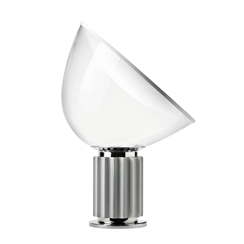 La lampe Taccia est une icône du design, conçue par les frères Castiglioni pour Flos et produite pour la première fois en 1962. Cette lampe de table à lumière indirecte et réfléchie est constituée d'un réflecteur en métal verni posé sur un diffuseur orientable, lui-même en verre transparent soufflé à la bouche. La taille du diffuseur est volontairement disproportionnée par rapport au socle en aluminium noir, inspiré des colonnes antiques, sur lequel il est juste posé. En fonction de l'orientation du diffuseur, la lampe Taccia émet un éclairage large, ou plus concentré.