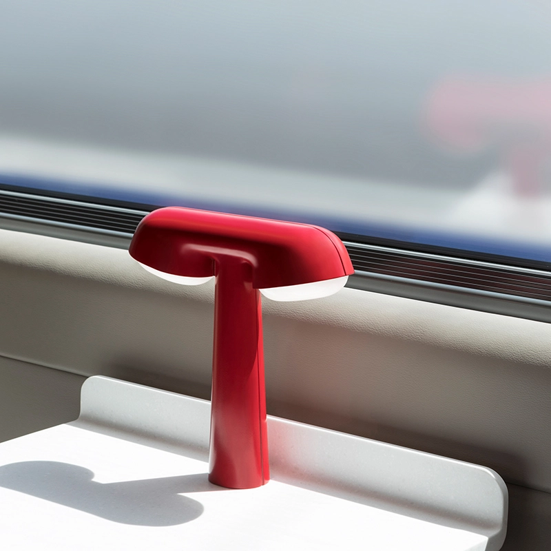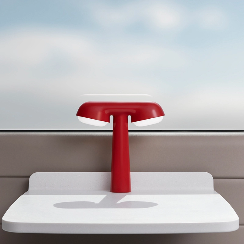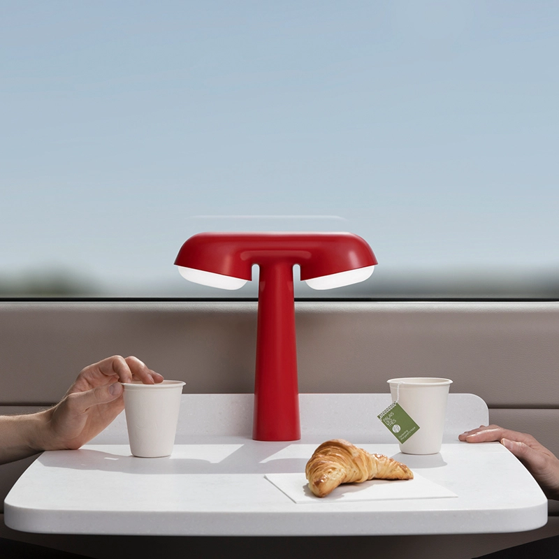 Initialement imaginée pour les nouvelles rames des trains à grande vitesse français, la lampe TGV a été dessinée par Ionna Vautrin à la demande de SNCF (société nationale de chemins de fer). Signe fort dans le parcours du voyageur, ce luminaire combine courbes léchées et rationalité géométrique. La luminosité confortable et la simplicité du dessin de la lampe TGV en font un objet connivent autour duquel le voyageur est invité à s’installer. Depuis le quai où elle accueille les passagers derrière les baies vitrées et pendant tout le voyage, la lampe TGV est un élément au caractère domestique, promesse d’un confort « comme à la maison ». SNCF et Moustache ont mutualisé leurs compétences pour donner jour à une lampe TGV à installer dans nos intérieurs. Fabriquée en aluminium injecté grâce à l’outillage industriel développé pour l’aménagement des nouveaux TGV, la version domestique de la lampe est identique à celles autour desquelles vous êtes installés pendant votre voyage. Seul un lest a été ajouté dans le corps de la lampe afin d’assurer sa parfaite stabilité et un système de vissage développé sous le socle afin de la fixer solidement dans des contextes particuliers tels que la restauration, l’hôtellerie et l’aménagement d’espaces publics.