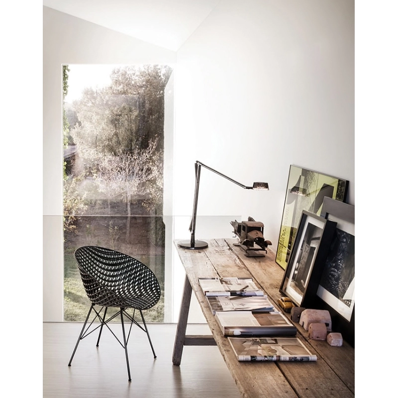Conçues par le duo Alberto & Francesco Meda, les lampes de tables Aledinont été pensées pour convenir parfaitement aux bureaux et aux intérieurs domestiques. Elles se différencient par leur diffuseur : TEC et DEC. Aledin DEC se distingue par son diffuseur conique orné d’une décoration facettée et la version Aledin TEC, quant à elle, est dotée d’une tête plate permettant d’obtenir un faisceau de lumière à la fois direct ou indirect grâce à son diffuseur articulé. Les deux bras articulés en polycarbonate composant la structure d'Aledin DEC se caractérisent par la présence de deux tiges en aluminium remplissant la fonction de conducteurs. Aledin DEC assure un haut rendement lumineux et une présence légère.