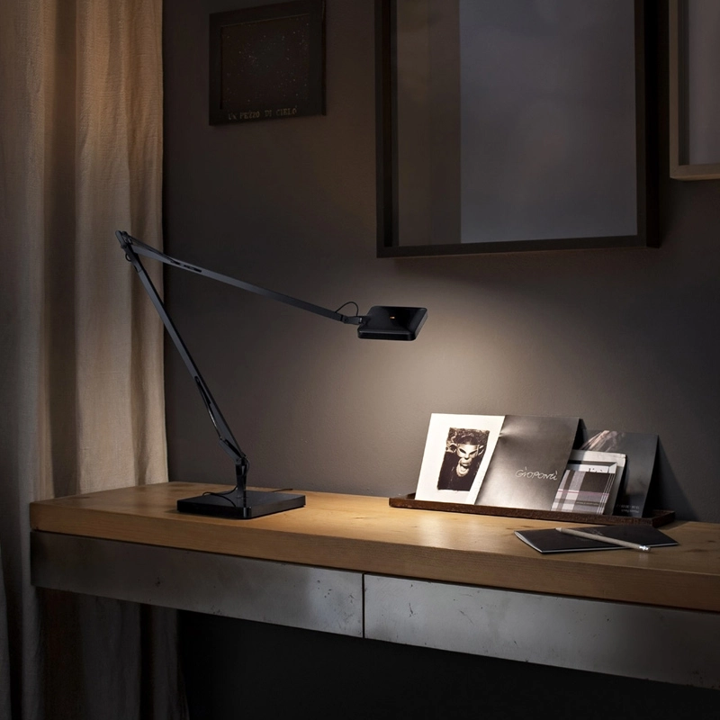 Le spécialiste italien de luminaires Flos édite la nouvelle version de la célèbre lampe Kelvin de Antonio Citterio, en utilisant la technologie LED pour un éclairage de meilleure qualité et une consommation énergétique quasi nulle. Le design épuré de cette lampe de table en fait un élément indispensable sur votre bureau, tant dans les espaces privés que publics. Elle dispose d'un bras orientable à 360° ainsi que d'une tête pivotante sur un axe de 355°, pour diffuser une lumière intense et chaude selon vos besoins. Cette lampe est un condensé de fonctionnalité et d'élégance. La base est en ABS et la tête est en fonte d'aluminium avec un capteur on/off. Kelvin est une lampe de bureau éco-design grâce à son design épuré et rigoureux, et ses matériaux entièrement recyclables pour une durabilité inégalée. Au bureau comme à la maison, cette lampe à l'ergonomie accrue et ultra-flexible est idéale pour éclairer tous vos plans de travail tout en faisant des économies d'énergie.