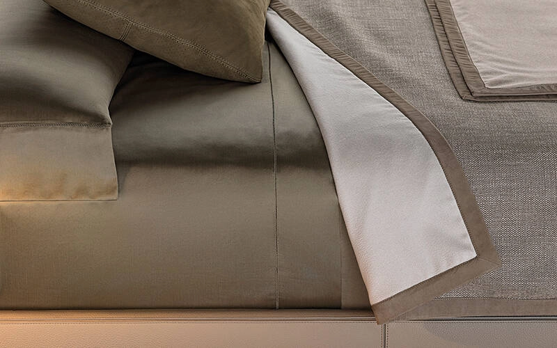 Caractérisé par des lignes essentielles et par une forme élancée, le lit Roger de Minotti reprend le concept du système de canapés du même nom à la fois dans son effet éthéré et dans l’aspect haute couture de la tête matelassée aux coutures horizontales sophistiquées et parcourue d’un passepoil sur l’ensemble de son pourtour. Affichant sa personnalité aux multiples facettes, le lit Roger peut être recouvert de tous les tissus et peaux de la collection Minotti. Le lit Roger se distingue par sa fabrication et une finition haut de gamme. Le sommier plateforme, fin et suspendu, est orné de détails sophistiqués ainsi que de coutures rabattues : les bandes de peau de la base structurelle, cousues ensemble à l’aide de rubans, sont réalisées selon une technique utilisée pour la confection de bagages de luxe. Le lit Roger de Minotti offre un confort absolu notamment en raison de l’inclinaison diagonale de la tête qui rappelle celle du système des canapés Roger et garantit une bonne posture de lecture. Surélevé de 13 cm, Roger repose sur des lames porteuses en aluminium extrudé peintes en couleur Black Coffee brillant et placées en retrait par rapport au pourtour du lit.
