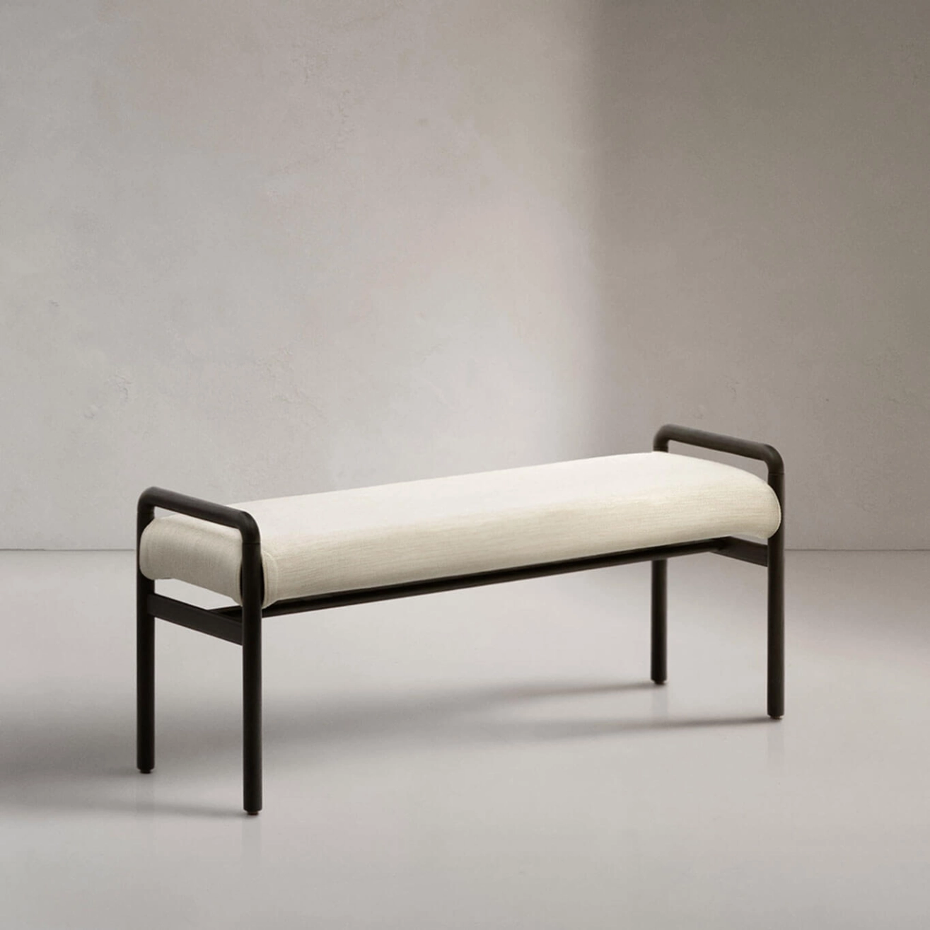 Structure en chêne teinté noir, assise avec revêtement tissu beige