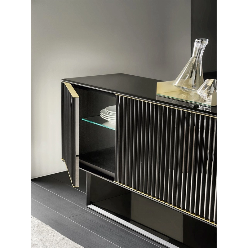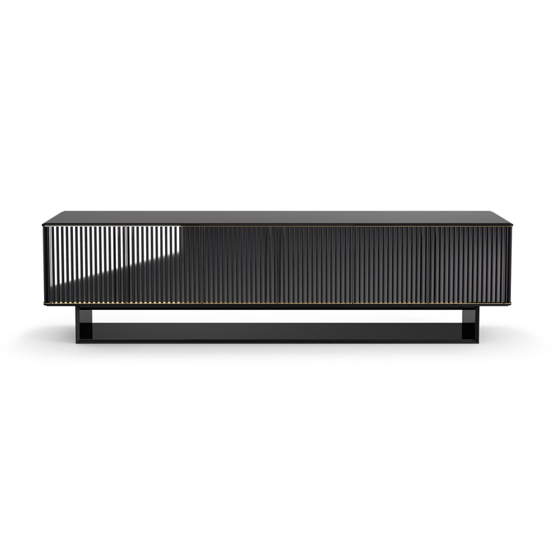 L'élégant meuble bas 5th Avenue Crédence conçu par Marcello Pozzi pour Galloti&Radice se dote de finitions extrêmement raffinées, aux multiples matériaux nobles et détails. Sont aspect brillant le rend si lumineux bien qu'étant d'apparence sombre. Ses détails en laiton soulignes son tracé rectiligne.