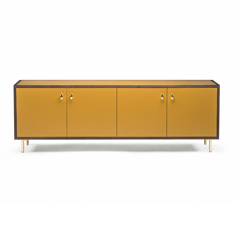 Inspiré par la juxtaposition de l'ancien et du nouveau design vu dans les brownstones convertis de Brooklyn, le buffet Classon est moderne avec des références historiques. Les poignées de porte et les pieds en bronze poli complètent élégamment le corps de l'armoire disponible en HDF peint et dans une gamme de bois et de finitions.