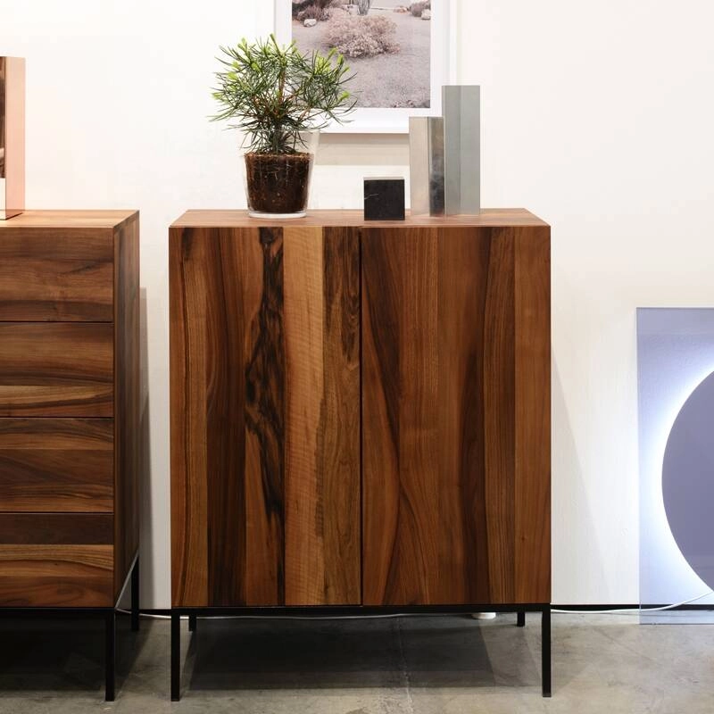 Dessiné par Philipp Mainzer, le buffet Fariba se distingue par sa composition verticale en chêne massif. Le rangement imposant contraste avec son piètement fin en acier qui lui donne un caractère à la fois moderne et intemporel. Les côtés des portes sont taillés en biseau, servant ainsi de poignées discrètes. Disponible en deux longueurs (90cm ou 135cm), le buffet Fariba, édité par E15, s'intègre très bien dans la salle à manger, dans le salon ou dans l'entrée.