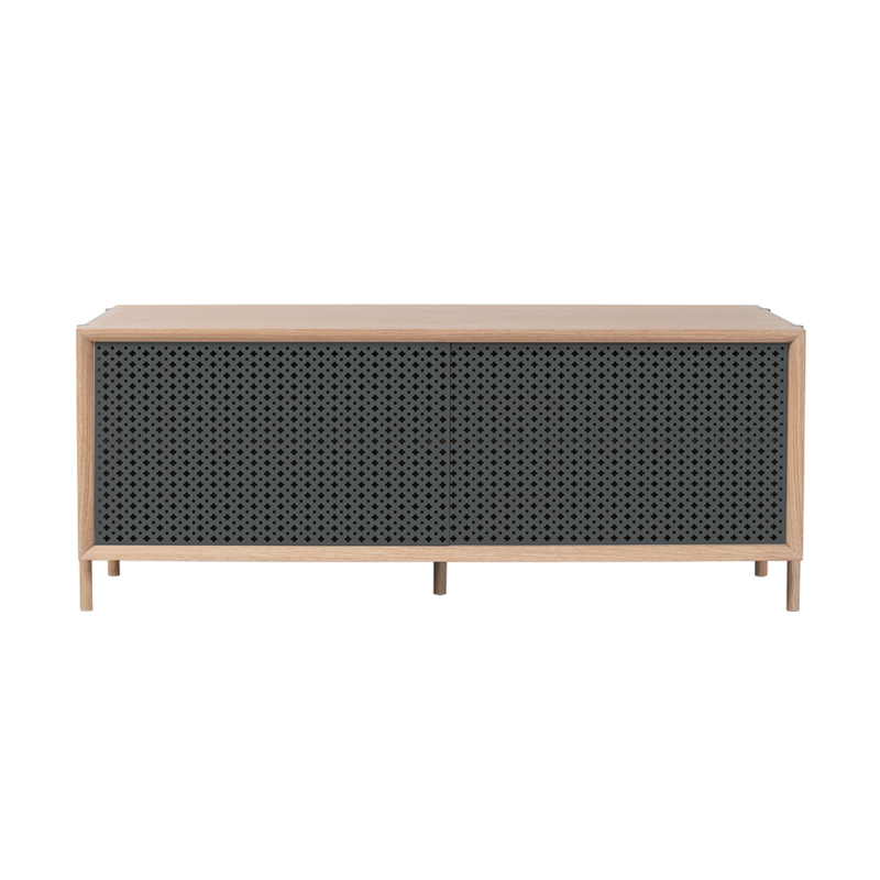 Dessinée par Mathieu Galard, directeur artistique d’Hartô, Gabin est une collection de rangements qui allie simplicité des formes et beauté des matériaux. Elle se démarque principalement par le motif inspiré du cannage, ainsi que par l'association bois et métal. Cet élégant buffet bas, doté de deux portes coulissantes ajourées est disponible en deux longueurs. Il se décline également dans une version avec tiroirs. Avec sa silhouette épurée et le motif graphique de ses portes, le buffet design Gabin trouvera sa place dans tous les intérieurs contemporains.