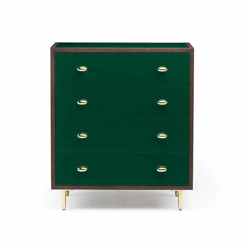 Inspiré par la juxtaposition de l'ancien et du nouveau design vu dans les brownstones convertis de Brooklyn, la commode Classon est moderne avec des références historiques. Les poignées et les pieds de tiroir en bronze poli complètent élégamment le corps de l'armoire disponible en HDF peint et dans une gamme de bois et de finitions. Quatre tiroirs, détaillés avec une menuiserie et un mécanisme de fermeture en douceur, offrent une capacité de rangement généreuse. Classon fait partie d'une famille de meubles de rangement comprenant un chevet, un coffre bas et un buffet.