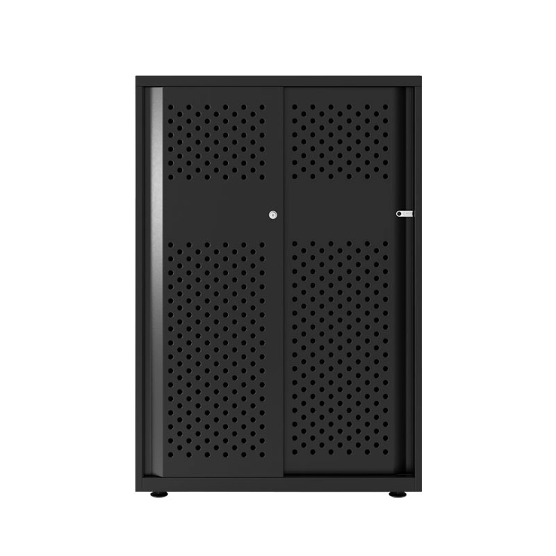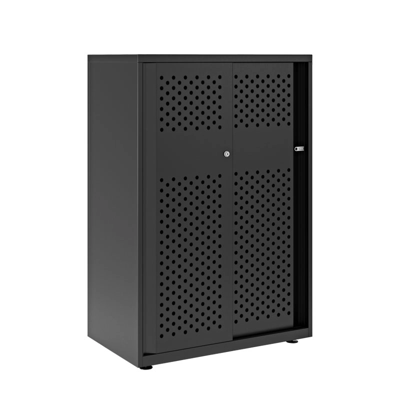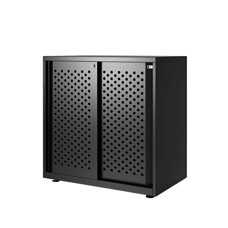 armoires Glide sont équipées de portes coulissantes perforées haut de gamme qui se ferment en douceur doux ainsi qu'une finition lisse qui permettra d'utiliser ces produits comme séparateurs d’espace si nécessaire.