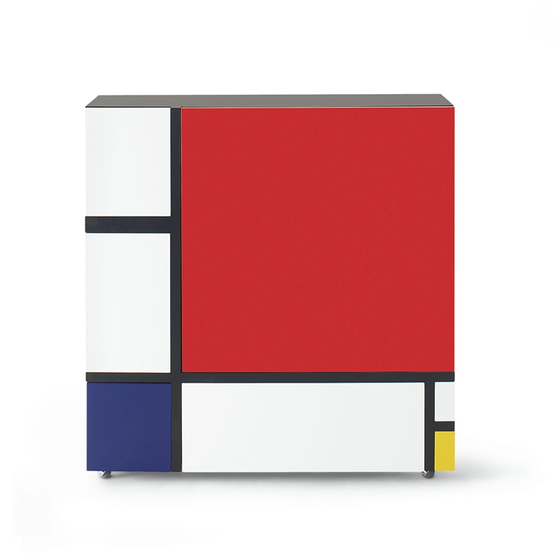 Homage To Mondrian est une collection de deux meubles de rangement inspirée de l'art abstrait du peintre hollandais Piet Mondrian. Le designer Shiro Kuramata dessine ces ceux  rangements design équipés de portes et de tiroirs laqués en deux assortiments de couleurs et montés sur des roulettes en caoutchouc. Ils reprennent  les caractéristiques des œuvres graphiques du peintre. Ces meubles sont des pièces de caractère qui imposent leur personnalité dans une pièce. Cappellini édite ces bahuts Homage to Mondrian  qui dissimulent à l'intérieur, des niches et des tiroirs pour accueillir et protéger tous les objets qui vous voulez ranger pour laisser place à des œuvres abstraites et de caractère dans votre salon ou le bureau.