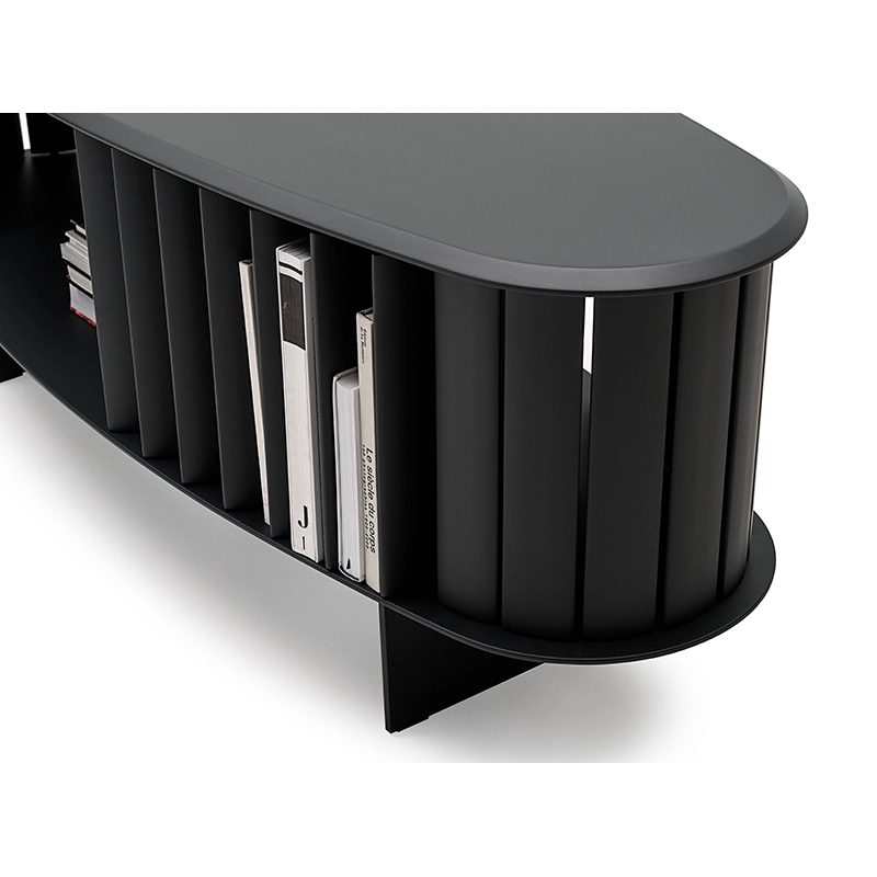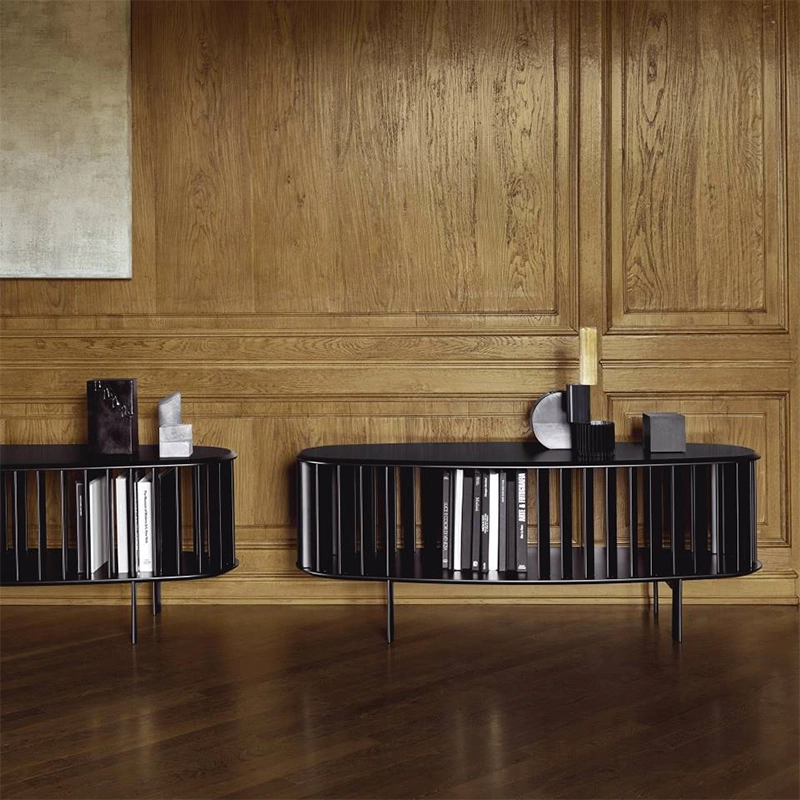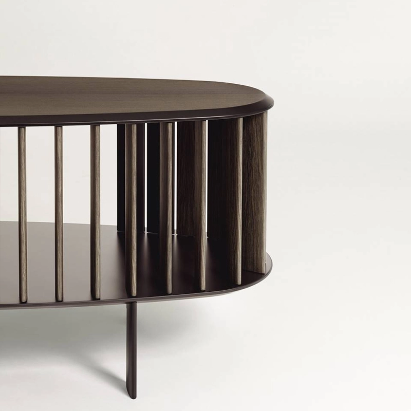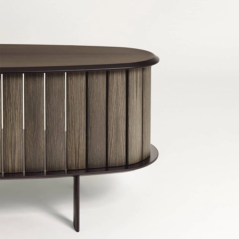 Dessiné par Stephen Burks pour Living Divani, Islands est un meuble de rangement accessible de tous les côtés grâce aux lattes en bois montées tout autour du meuble. Grâce au pivot central, les lattes tournent sur elles-mêmes, créant tantôt une présence compacte, tantôt un élément aéré. Ainsi le même meuble peut prendre différentes apparences selon les envies. Le buffet Islands de Living Divani est élégant et se marie parfaitement dans des pièces au style contemporain comme classique. Contactez-nous pour plus d’informations.