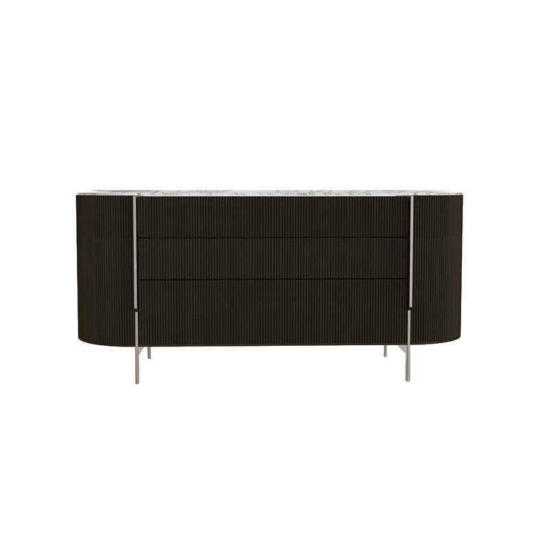frêne laqué noir, plateau marbre calacatta