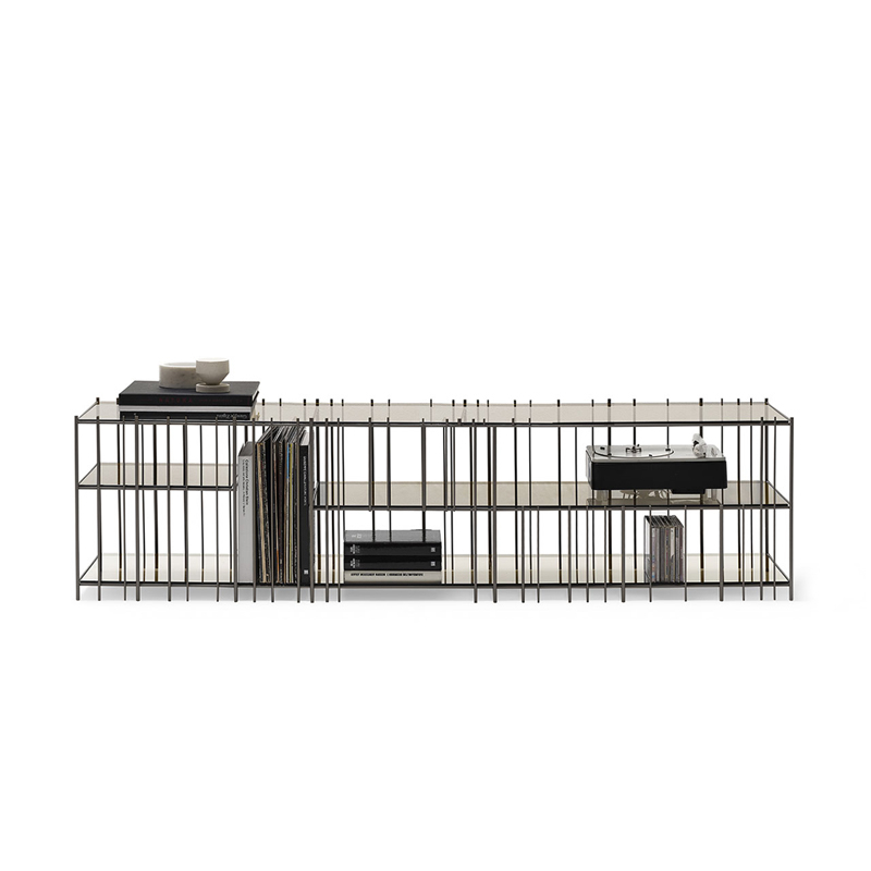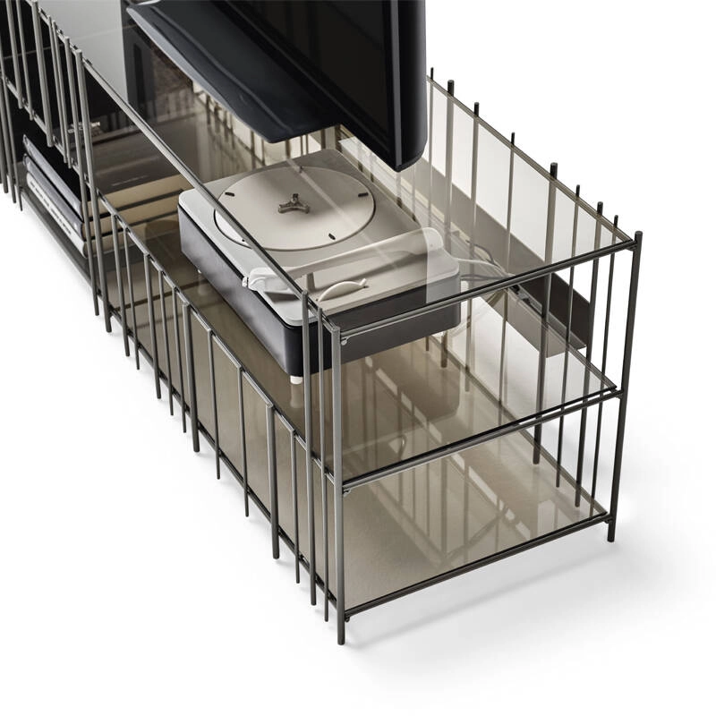 Grâce à sa composition en tiges de métal et en verre, Metrica TV est un meuble visuellement léger qui apporte du caractère à tout espace.
