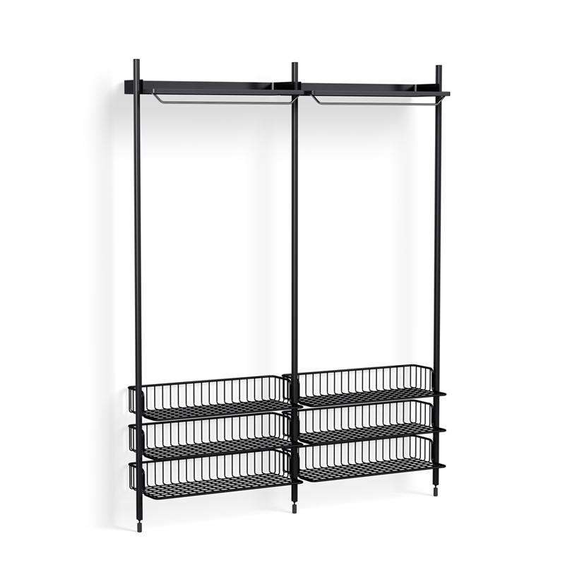 Dessiné par les célèbres designers Ronan & Erwan Bouroullec, Pier System est un système de rangement multifonctionnel, développé pour s’adapter aux conditions vie moderne. Livré à plat et facile à monter, à reconfigurer et à recycler, Pier System est doté d’une construction simple et flexible, qui permet de ranger et d’organiser de nombreux types d’objets. Réalisé à partir d’aluminium et d’acier en utilisant le minimum de composants nécessaires à un système de rangement complet, Pier System est disponible dans différentes couleurs et de nombreuses configurations, qui peuvent être combinées ensemble. Les éléments des configurations peuvent être déplacés selon les besoins ou les envies, pour intégrer les fonctions que l’on souhaite. Edité par Hay, le système de rangement Pier trouve sa place dans toutes les pièces de la maison, que ce soit le salon, la chambre, l’entrée ou le bureau. Il est également adapté aux espaces contract. La configuration 1022 est dotée de deux étagères avec penderies et de six étagère en fil d'acier.