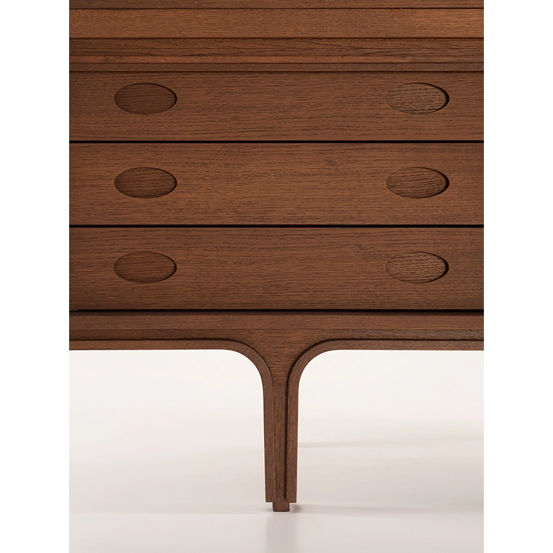 La collection Serie 500 de Gianfranco Frattini rééditée par Tacchini est l’une des collections les plus caractéristiques et les plus complètes du designer. Dessinée en 1960, la Serie 500 est née d'une observation attentive des besoins d'une nouvelle façon de vivre et de nouvelles fonctions filtrées par la sensibilité esthétique et la mémoire historique du designer. La collection Serie 500 se compose de deux meubles de rangement, le buffet 500/3 avec trois éléments à volets et le buffet haut 500/4 avec quatre volets. La base en bois des meubles garantis solidité et durabilité dans le temps. Intemporelle, la collection Serie 500 Tacchini apporte une touche élégante et chaleureuse dans les intérieurs modernes.