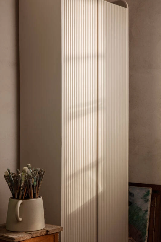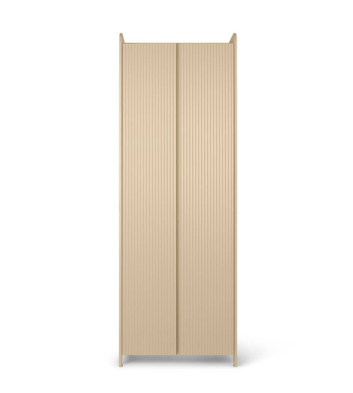 Conçu par Trine Andersen pour la marque Ferm Living, Sill offre une solution de rangement fonctionnelle décorative et polyvalente. Le nom Sill vient de "sillon", en référence aux rainures sculptées qui ornent les portes de l'armoire Sill. Ce meuble trouve sa place dans toute la maison : dans la chambre d'enfant, l'entrée, la chambre ou dans la cuisine. Le dessus de l'armoire présente des bords surélevés le long de trois côtés, vous offrant une surface pour un stockage supplémentaire ou comme présentoir pour vos objets préférés. En plus des portes festonnées, les coins arrondis contribuent à l'expression ludique qui caractérise le design de Sill. Par sécurité, le rangement doit être fixé au mur.