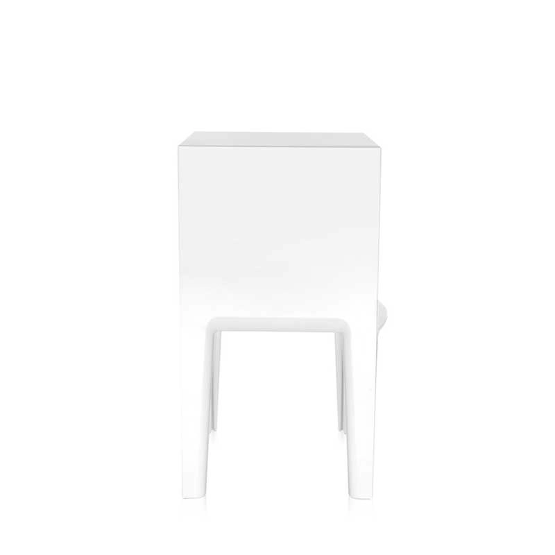 En forme de cube et soutenue par quatre pieds fins, Small Ghost Buster est la première table de chevet créée par Kartell. Philippe Starck a dessiné un meuble de rangement simple, maniable, qui peut trouver place dans n'importe quel coin de la maison. La table de chevet alterne arrêtes et courbures et se décline en noir, blanc, transparent, fumé, violet, jaune ou rouge.