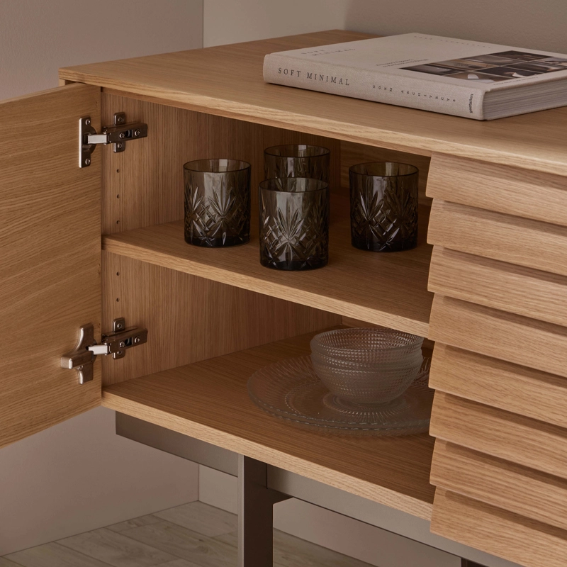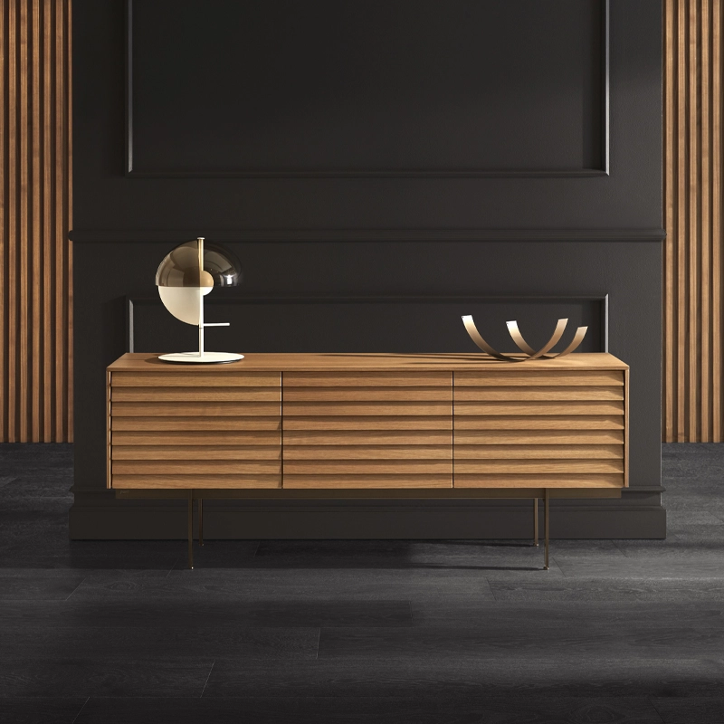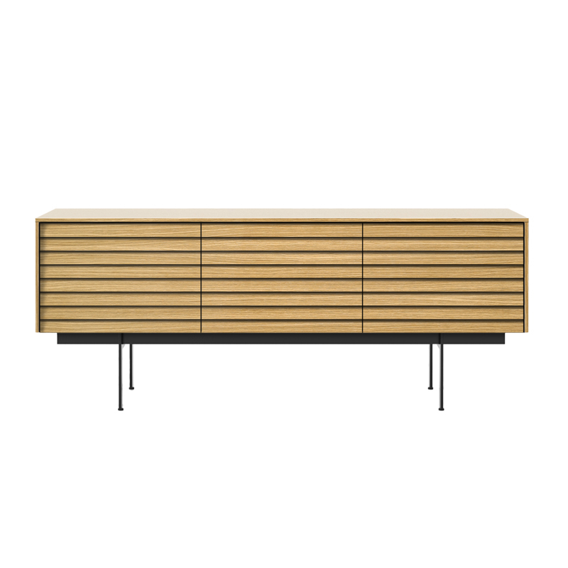 Le buffet Sussex au design original a été créé et imaginé par Terence Woodgate pour Punt Mobles. La structure en bois massif de Sussex possède des lames horizontales en partie frontale qui masquent les divisions et servent aussi de poignées aux portes et tiroirs. Les éléments de porte incluent des étagères réglables en hauteur. Sussex est un meuble idéal pour la décoration des bureaux et des pièces de réception, en tant que meuble de télévision par exemple.
