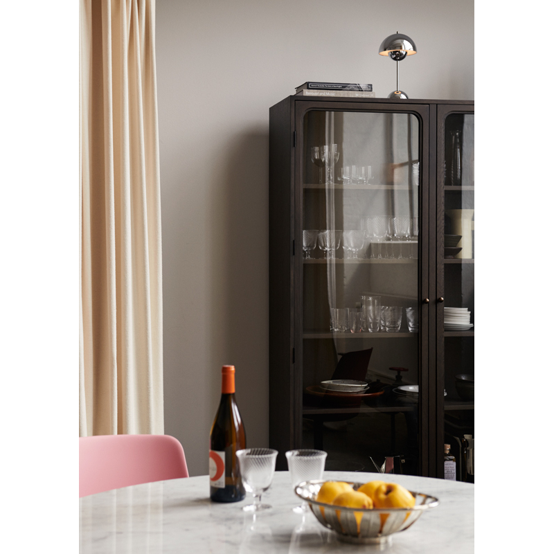 Editée par And Tradition, la collection de rangements Trace combine des détails luxueux avec une silhouette élancée. Le meuble de rangement Trace, composé d'une structure en chêne et de portes vitrées, est la dernière collaboration entre And Tradition et Space Copenhagen. Sa silhouette classique à l'expression contemporaine offre un espace de rangement et un cadre élégant pour exposer des objets précieux. Le nom « Trace » fait référence à toutes les pièces que l’on collecte durant notre vie. Le cabinet fonctionne comme un prolongement de ces traces, en mettant en valeur ces articles précieux dans un cadre qui se marie parfaitement avec tous les décors intérieurs. Les designers de la collection Trace qualifient le meuble comme étant une pièce élégante et sobre, qui met en valeur les objets qui y sont placés plutôt que d’attirer l’attention sur lui-même. Le résultat est un meuble de rangement intemporel qui s'intègre sans effort dans n'importe quel espace. Ce sont les détails discrets qui le composent qui donnent à Trace un intérêt visuel. Disponibles dans les finitions chêne et chêne teinté foncé, les meubles Trace sont dotés de subtils détails en laiton pour compléter le savoir-faire raffiné et l'élégance de l’armoire. Fabriqué au Portugal selon des pratiques ancestrales de travail du bois, le rangement Trace est issu d’un matériau d’origine contrôlée et certifiée FSC. La simplicité et la polyvalence des rangements Trace en font des toiles parfaites pour présenter une collection de livres, de verrerie ou d’objets, et ce dans tous les espaces.