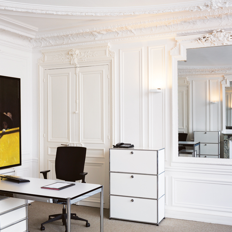 Créés par l'architecte Fritz Haller et l'industriel visionnaire Paul Schärer, les meubles USM sont fabriqués en Suisse depuis plus de 50 ans et sont reconnus dans le monde entier. La qualité de fabrication des meubles USM HALLER et leurs lignes intemporelles en font un classique incontournable du design, qui trouve sa place aussi bien dans les bureaux que dans les plus beaux intérieurs, classiques ou modernes. Sa conception modulaire permet de le faire évoluer au fil du temps selon les besoins et les envies.