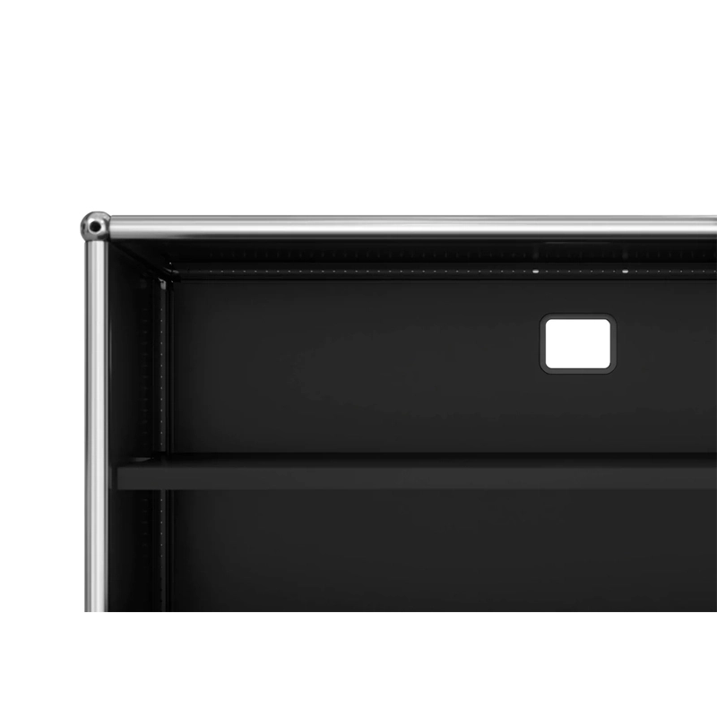Le meuble Haller M61 est composé de 2 portes abattantes, un rayon intermédiaire, une découpe passe-câble et équipé de roulettes. Le meuble Haller M61 est doté d'une structure en acier chromé assemblé par des boules de connexion, habillée de panneaux d'acier thermolaqué et monté sur roulettes. Portes classiques ne nécessitant pas de clefs. (Sécurisées à la livraison, les portes se déverrouillent pour la première fois à l’aide d’une pièce ou d’une clef normale)