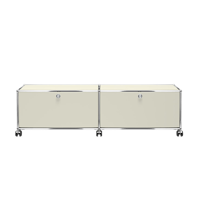 Le meuble Haller M61 est composé de 2 portes abattantes, un rayon intermédiaire, une découpe passe-câble et équipé de roulettes. Le meuble Haller M61 est doté d'une structure en acier chromé assemblé par des boules de connexion, habillée de panneaux d'acier thermolaqué et monté sur roulettes. Portes classiques ne nécessitant pas de clefs. (Sécurisées à la livraison, les portes se déverrouillent pour la première fois à l’aide d’une pièce ou d’une clef normale)