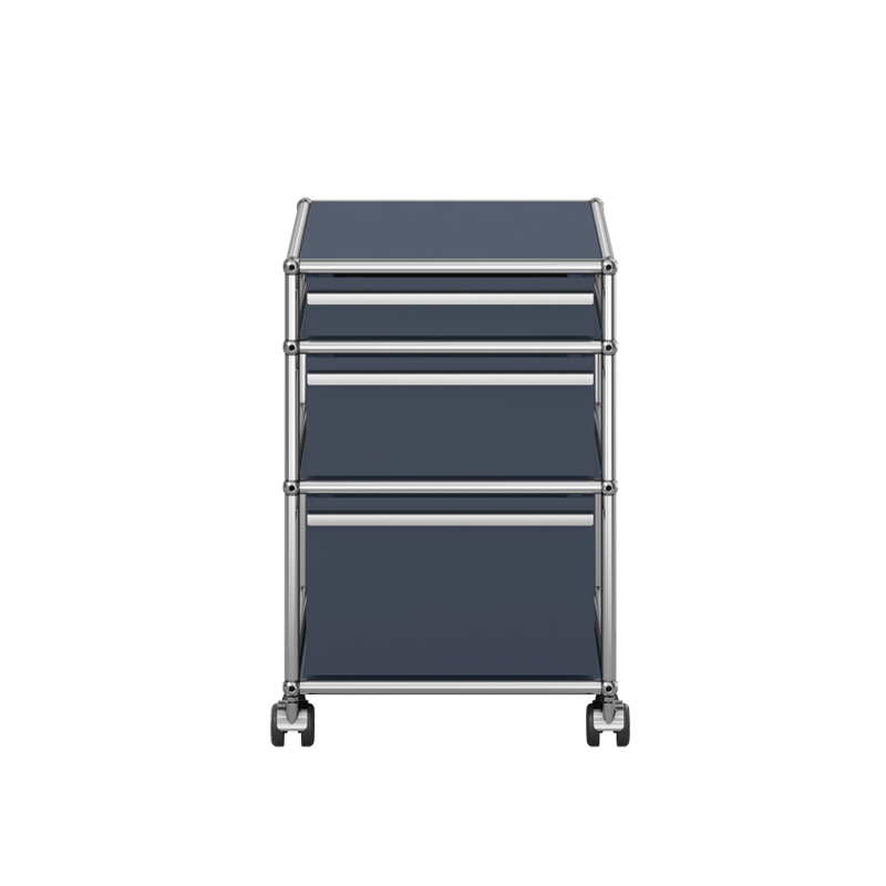 Créés par l'architecte Fritz Haller et l'industriel visionnaire Paul Schärer, les meubles USM sont fabriqués en Suisse depuis plus de 50 ans et sont reconnus dans le monde entier. La qualité de fabrication des meubles USM HALLER et leurs lignes intemporelles en font un classique incontournable du design, qui trouve sa place aussi bien dans les bureaux que dans les plus beaux intérieurs, classiques ou modernes. Sa conception modulaire permet de le faire évoluer au fil du temps selon les besoins et les envies. Le caisson à roulettes USM Haller M63 est composé de trois tiroirs, deux bacs Inos avec inserts, et un contrepoids. Le meuble Haller M63 est doté d'une structure en acier chromé assemblé par des boules de connexion, habillée de panneaux d'acier thermolaqué et monté sur des patins réglables en hauteur. Il est parfait pour compléter un espace bureau à la maison.