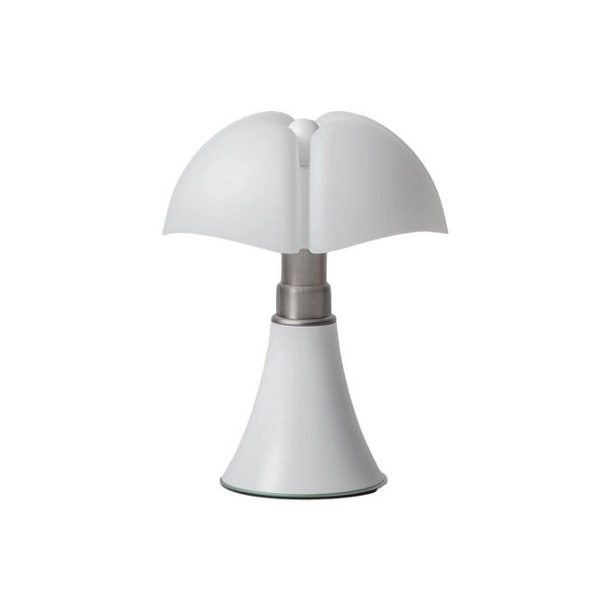 La lampe MiniPipistrello White Matt revisite l’une des créations les plus emblématiques de Gae Aulenti dans un format compact et résolument contemporain. Proposée par Martinelli Luce, cette version en finition blanc mat met en lumière la pureté des lignes et l’élégance sculpturale qui ont fait la renommée de la collection Pipistrello. Sa silhouette organique, inspirée du déploiement délicat d’ailes, confère à la lampe une présence douce et harmonieuse qui sublime chaque espace.