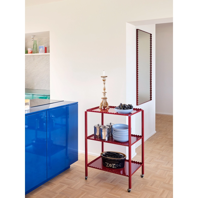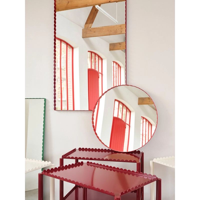 Dessiné par le duo belge Muller Van Severen pour Hay, le miroir Arcs se distingue par une chaine d’arcs verticaux qui entoure le miroir pour créer une bordure élégante et festonnée. Le miroir Arcs est disponible dans différentes couleurs et plusieurs tailles et formes, allant d’un petit miroir rond à une grand miroir rectangulaire. Cette variété de modèles permet au miroir Arcs de trouver sa place dans toutes les pièces de la maison.