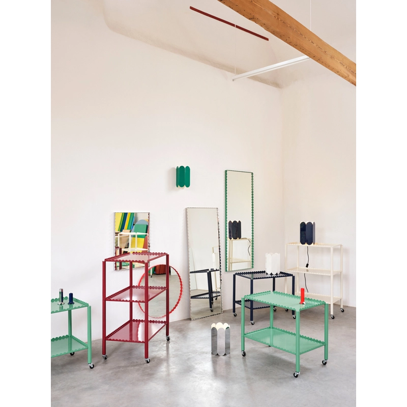 Dessiné par le duo belge Muller Van Severen pour Hay, le miroir Arcs se distingue par une chaine d’arcs verticaux qui entoure le miroir pour créer une bordure élégante et festonnée. Le miroir Arcs est disponible dans différentes couleurs et plusieurs tailles et formes, allant d’un petit miroir rond à une grand miroir rectangulaire. Cette variété de modèles permet au miroir Arcs de trouver sa place dans toutes les pièces de la maison.