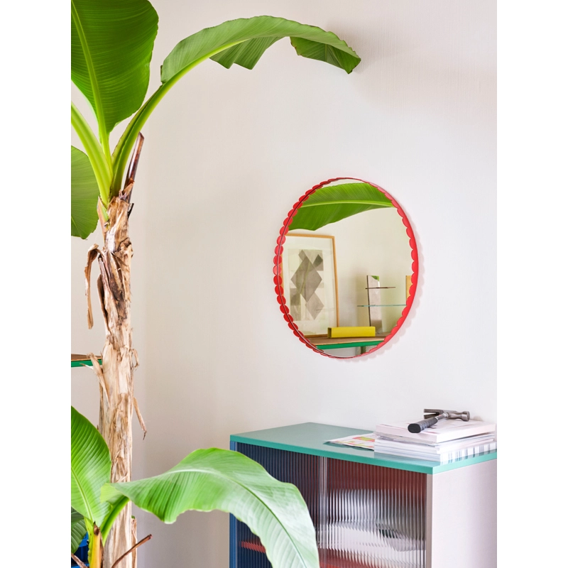 Dessiné par le duo belge Muller Van Severen pour Hay, le miroir Arcs se distingue par une chaine d’arcs verticaux qui entoure le miroir pour créer une bordure élégante et festonnée. Le miroir Arcs est disponible dans différentes couleurs et plusieurs tailles et formes, allant d’un petit miroir rond à une grand miroir rectangulaire. Cette variété de modèles permet au miroir Arcs de trouver sa place dans toutes les pièces de la maison.