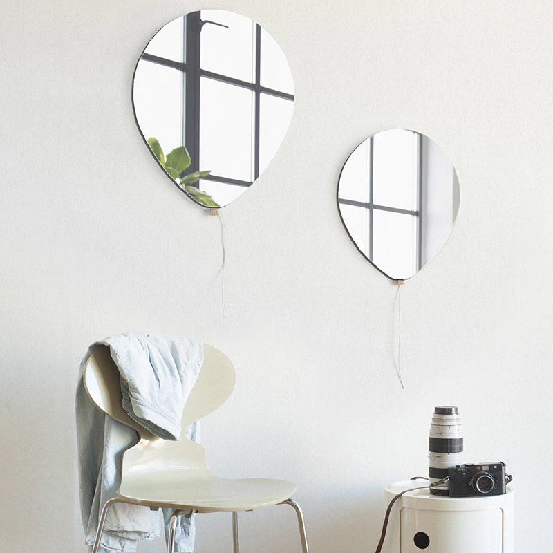 Edité par la marque danoise Elements Optimal, Balloon est un miroir ludique et élégant, disponible en deux tailles. Le miroir en forme de ballon est complété par un petit morceau de chêne et une fine lanière en cuir qui forment un détail original. Balloon peut être installé aussi bien dans une chambre d'enfants que dans une salle de bain ou une entrée, seul ou en composition de plusieurs éléments.