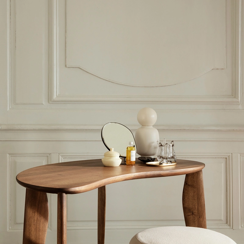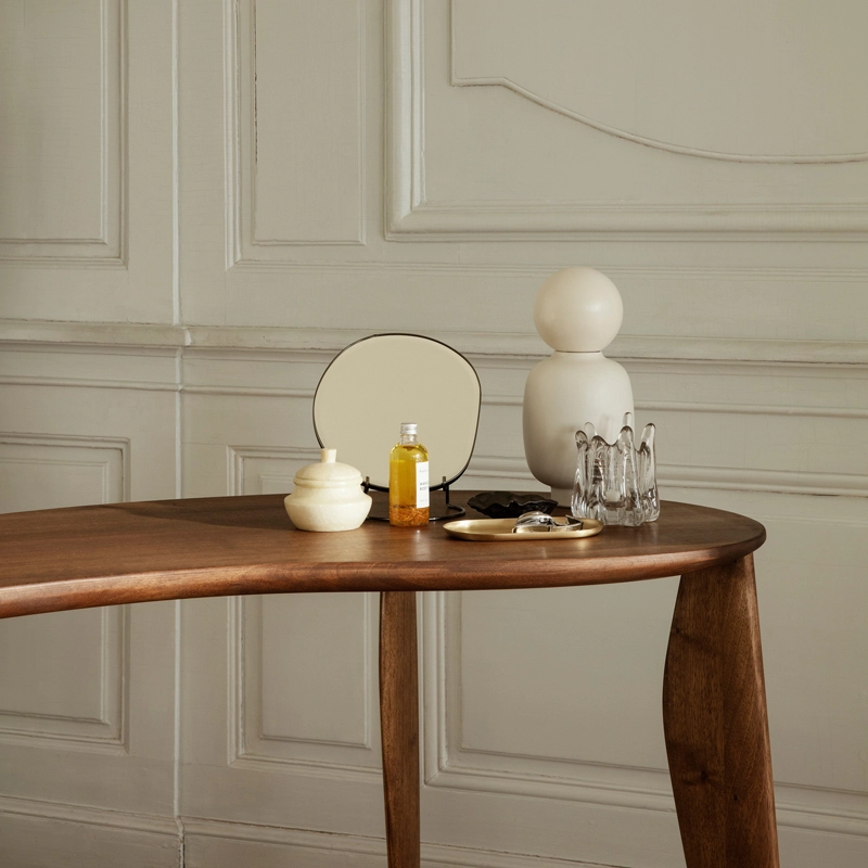 Installé sur un support en métal fin et amovible, le miroir de table Pond est doté d’une forme asymétrique, apportant une touche intrigante sur un design classique. Inspiré par les mouvements de l’eau, le miroir Pond invite des formes fluides et organiques dans votre maison. Il trouve sa place aussi bien sur une coiffeuse dans la chambre que dans l’entrée ou sur une étagère de la salle de bain. Une façon élégante de refléter votre routine quotidienne !