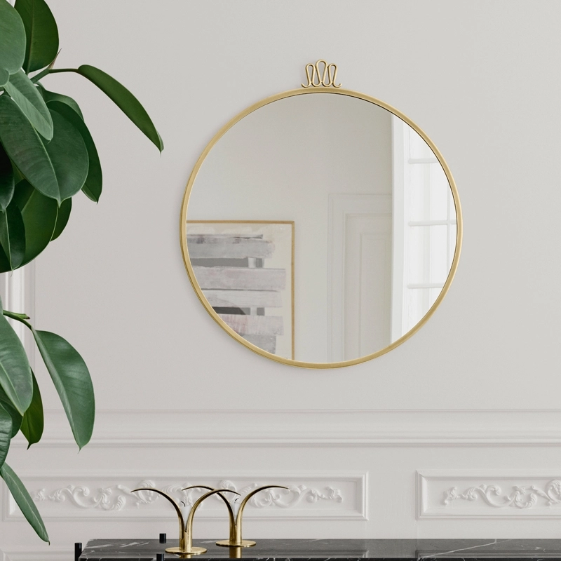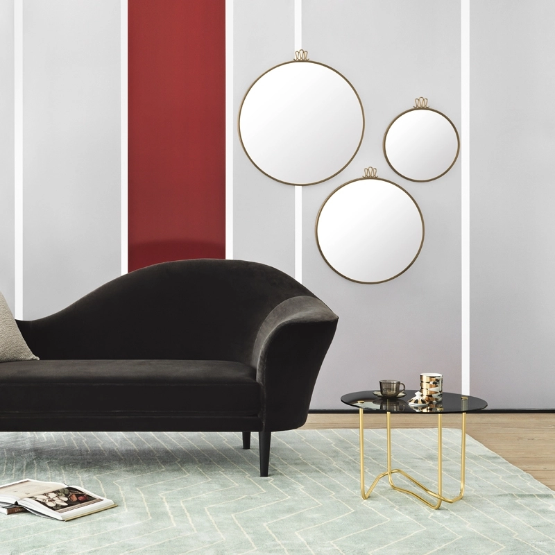 Dessiné en 1925 par Gio Ponti, Randaccio est un miroir élégant, conçu pour sa maison Via Randaccio à Milan. Réédité par Gubi, ce miroir, disponible en trois tailles, est équipé d'un cadre en laiton qui lui confère une élégance intemporelle. Il est sumonté d'une petite couronne, détail atypique, caractéristique du travail de Gio Ponti. Le miroir Randaccio s'intègre parfaitement dans la salle de bain, au-dessus du lavabo, dans l'entrée, ou bien dans une chambre.