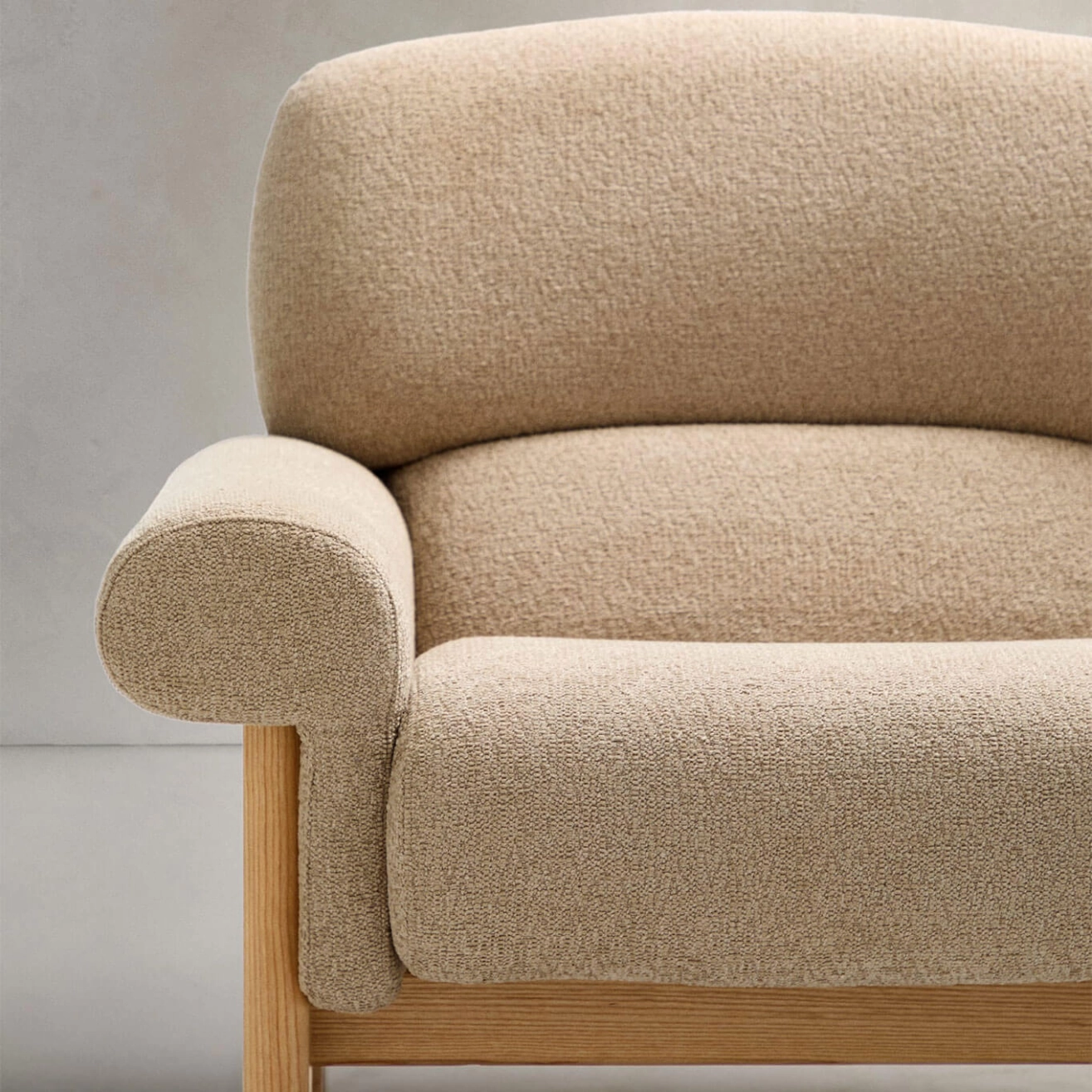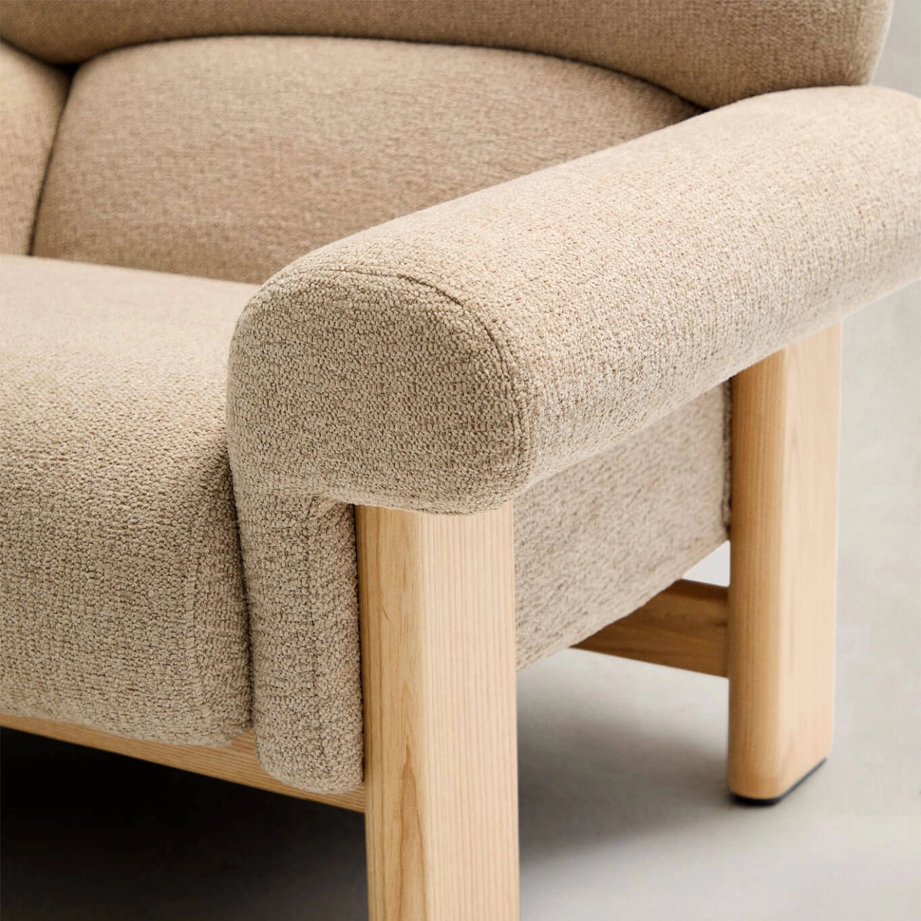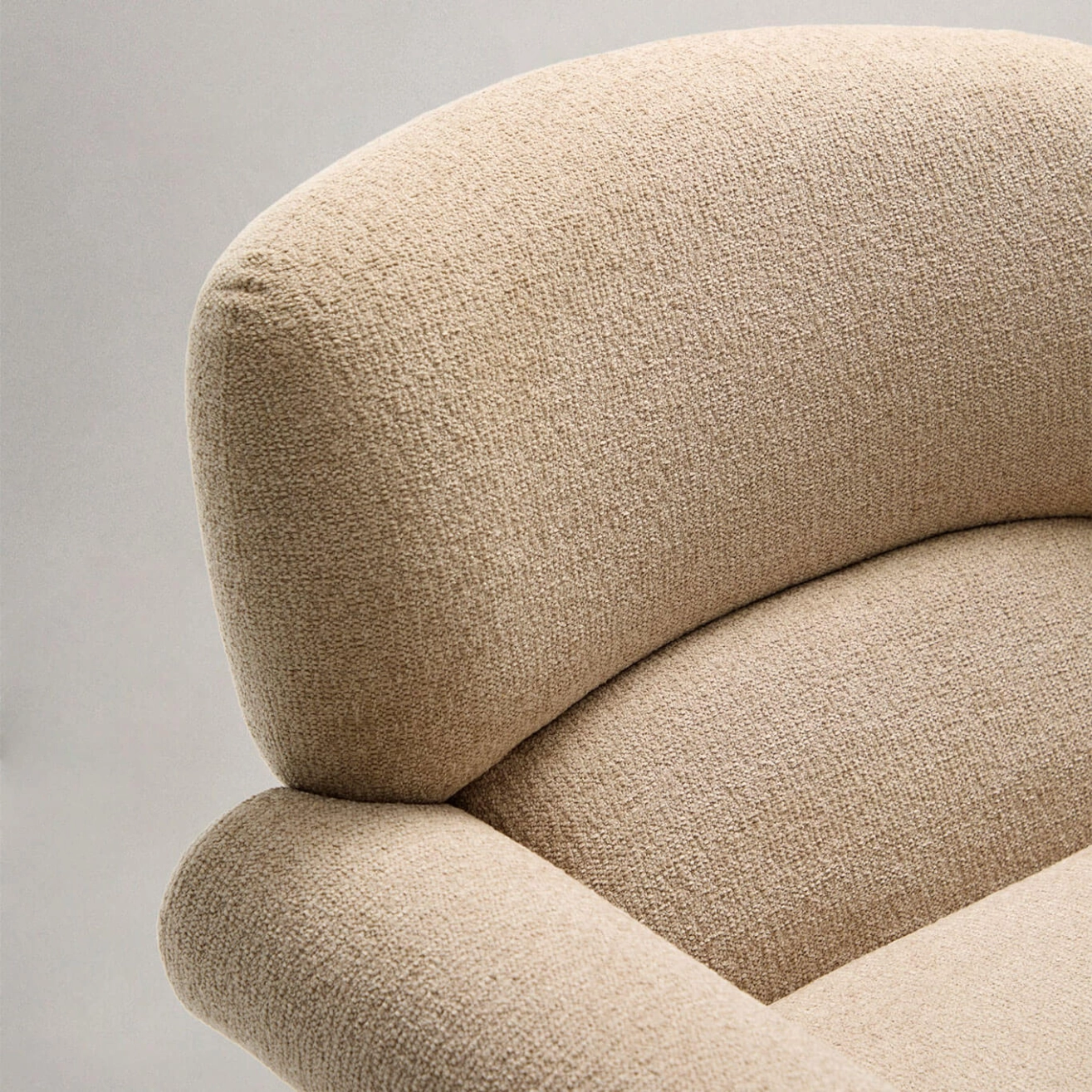 Kave Home incarne l’équilibre parfait entre le modernisme brésilien et le design scandinave des années 50. Avec ses formes généreuses et ses lignes robustes mais épurées, il s’impose comme une pièce aussi confortable qu’élégante, pensée pour enrichir tous types d’intérieurs. Revêtu d’un tissu bouclette taupe ou beige, certifié pour une fabrication respectueuse de l’environnement et de la santé, le