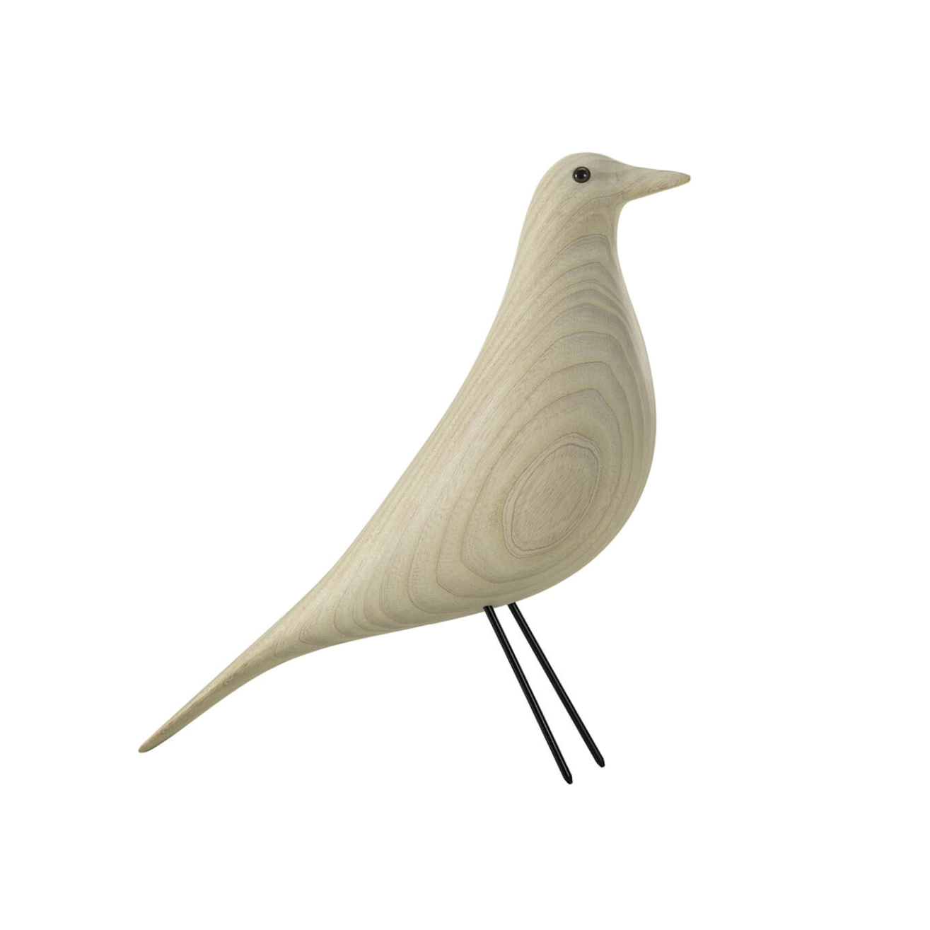Le couple de designers Charles et Ray Eames aimaient décorer leur maison privée, avec de nombreux objets et accessoires, ramenés lors de leurs voyages. Au milieu de leur salon, nous pouvons retrouver depuis plus de cinquante ans, une sculpture d’oiseau en bois. Cette charmante création, l'oiseau Eames House Bird de Vitra, n’est pas un design typique de Charles et Ray Eames, mais il symbolise leur affection pour le Folk Art américain. Le Eames House Bird Noyer est un grand classique du design américain. Le Eames House Bird est disponible aussi dans une version noire, éditée par Vitra. C’est un objet insolite pour la maison, à poser sur une table de bureau ou de salle à manger. Le Eames House Bird est un de leurs objets les plus prisés de l’art populaire américain. Édité par Vitra, cet oiseau au charme intemporel se décline aujourd’hui dans de nouvelles finitions raffinées : le noyer foncé, le frêne noir et le frêne Cotton White. Trois nuances élégantes qui réinventent ce symbole du Folk Art américain tout en respectant l’esthétique originale imaginée par les Eames. Sa forte présence a été utilisée de nombreuses fois dans leurs photos comme accessoire de décoration, inspiré de l’oiseau de la région des Appalaches à l’est des États-Unis. Le Eames House Bird fait partie des accessoires du design les plus prisés par les amateurs de design Eames et d’ornithologie. En combinant le design de base de l’oiseau et la créativité de la famille Eames, Vitra a décidé de produire cet oiseau en série.