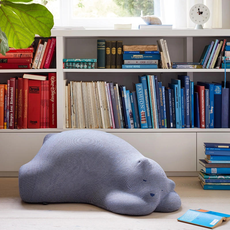 Resting Animals – dont la posture dégage beaucoup de calme et de placidité. Parmi celles-ci, la plus grande est un ours revêtu de tricot qui peut servir de tabouret ou d’ottoman. Les