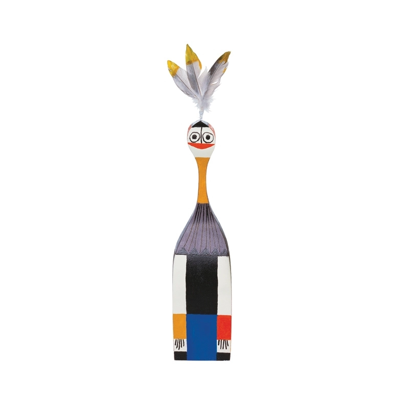 Né en 1907 à New York, Alexander Girard est l’une des figures emblématiques du design américain de l’après-guerre. Architecte de formation, il est longtemps resté dans l’ombre avant de prendre la direction de la division tissus et textiles de l’éditeur Herman Miller, pour qui il créa une multitude de tissus aux couleurs vives, avec un goût prononcé pour les motifs géométriques et les formes abstraites. Ses inspirations puisent leurs racines dans ses voyages et découvertes à travers le monde. Il est également lié d’amitié avec les designers George Nelson et le couple Charles & Ray Eames. Alexander Girard se distingue par ses créations de mobilier ainsi que par ses séries de personnages décalés en bois, surnommés « Wooden Dolls » ou « Figurine Dolls ». Aujourd’hui édité par Vitra, son travail continue de résonner dans le monde du design. En 1962, avec l’aide de sa femme, il crée la Fondation Girard, qui recense une collection de plus de 100 000 pièces. Après sa disparition en 1993, ses héritiers font don de ses archives, comprenant de nombreux croquis, prototypes et échantillons, au Vitra Design Museum.