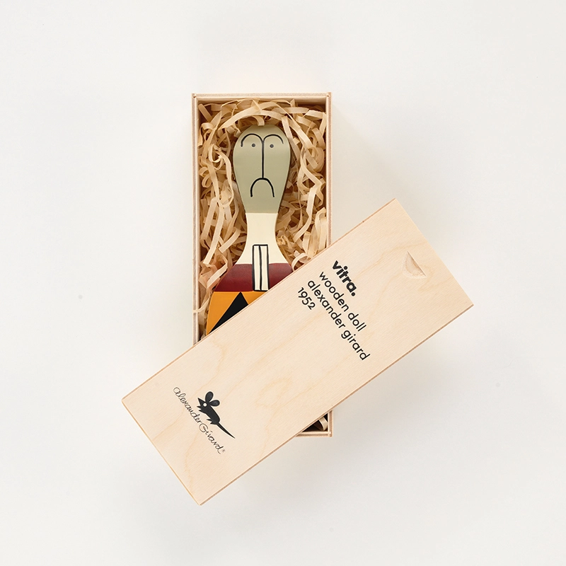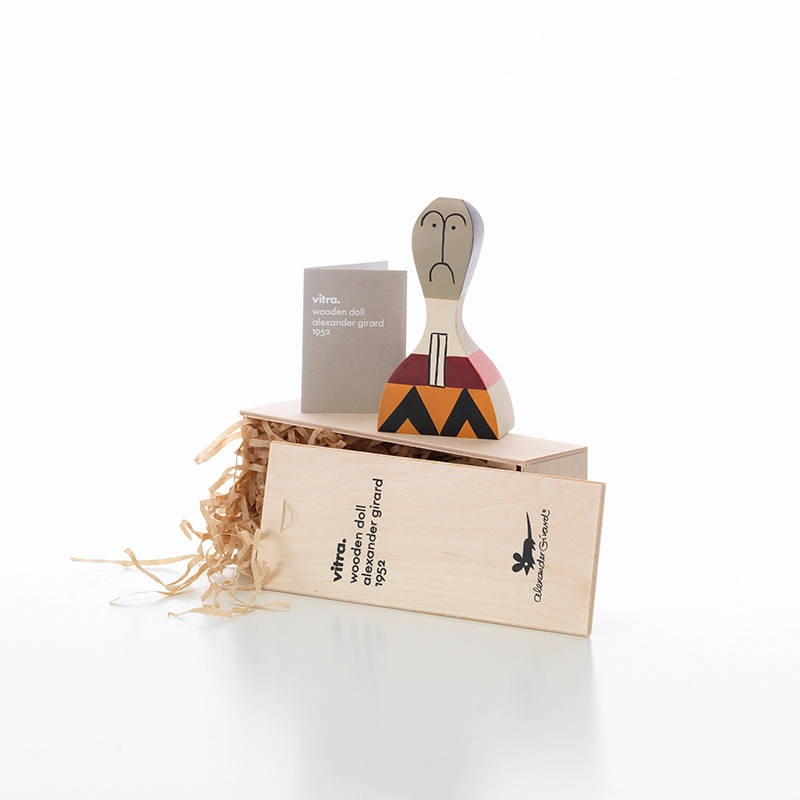 Inspiré par sa vaste collection d'œuvres d'art populaire, l'architecte et designer Alexander Girard crée les Wooden Dolls pour sa propre maison à Santa Fe, destinées uniquement à son usage personnel. Entre l'objet de décoration et le jouet, les Wooden Dolls sont désormais disponibles au grand public, pour enrichir votre aménagement intérieur. Les Wooden Dolls font partie de la collection du Vitra Design Museum, reconnues internationalement, et exposées dans de nombreux musées et galeries de design. Incontournables, ces petites poupées fabriquées et peintes à la main en bois de pin massif, sont vendues dans leur écrin en bois imprimé. Les Wooden Dolls vous charmeront sans aucun doute, que vous en ayez une ou plusieurs, car ces objets insolites sont, selon le designer : « un microcosme du monde humain et des rêves , elles représentent la fantaisie, l'imagination, l'humour et l'amour ».