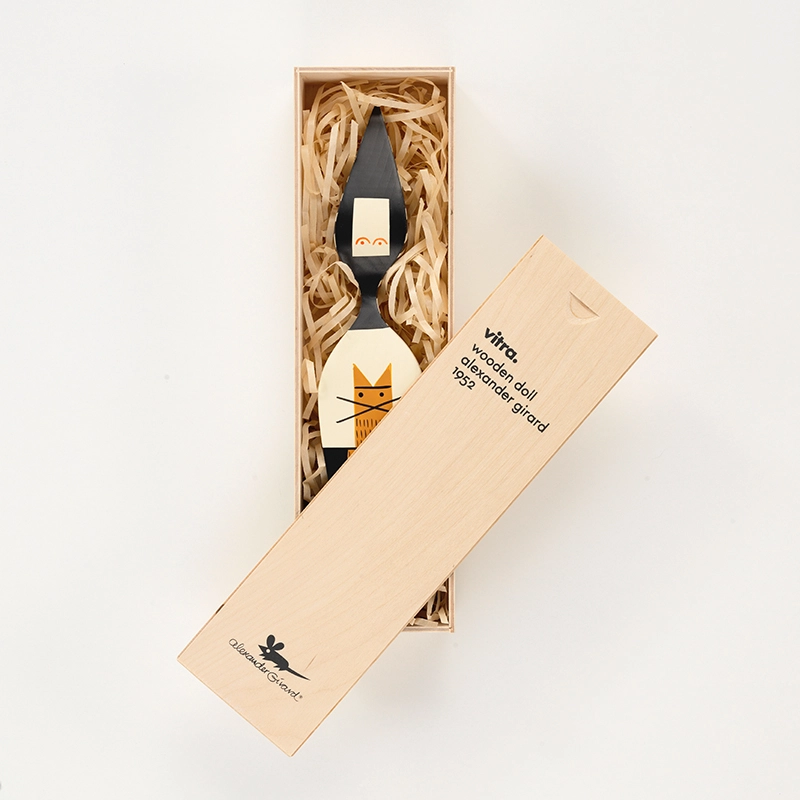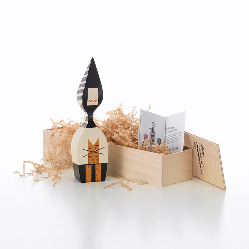 Inspiré par sa vaste collection d'œuvres d'art populaire, l'architecte et designer Alexander Girard crée les Wooden Dolls pour sa propre maison à Santa Fe, destinées uniquement à son usage personnel. Entre l'objet de décoration et le jouet, les Wooden Dolls sont désormais disponibles au grand public, pour enrichir votre aménagement intérieur. Les Wooden Dolls font partie de la collection du Vitra Design Museum, reconnues internationalement, et exposées dans de nombreux musées et galeries de design. Incontournables, ces petites poupées fabriquées et peintes à la main en bois de pin massif, sont vendues dans leur écrin en bois imprimé. Les Wooden Dolls vous charmeront sans aucun doute, que vous en ayez une ou plusieurs, car ces objets insolites sont, selon le designer : « un microcosme du monde humain et des rêves , elles représentent la fantaisie, l'imagination, l'humour et l'amour ».