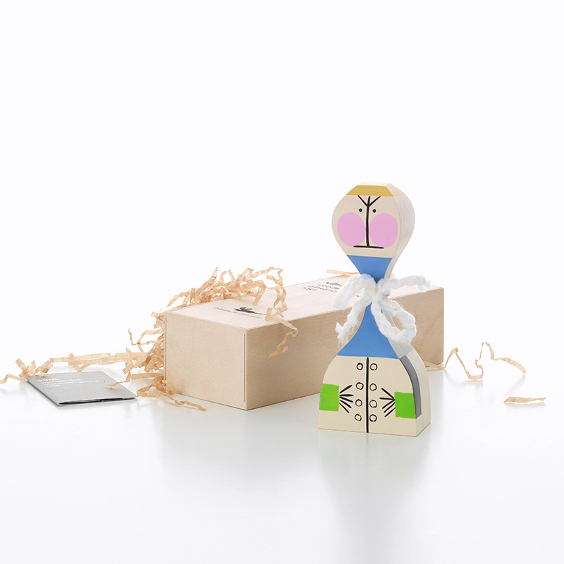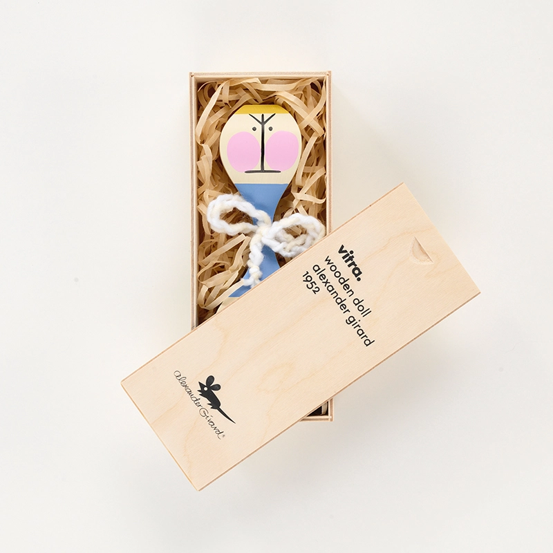 Inspiré par sa vaste collection d'œuvres d'art populaire, l'architecte et designer Alexander Girard crée les Wooden Dolls pour sa propre maison à Santa Fe, destinées uniquement à son usage personnel. Entre l'objet de décoration et le jouet, les Wooden Dolls sont désormais disponibles au grand public, pour enrichir votre aménagement intérieur. Les Wooden Dolls font partie de la collection du Vitra Design Museum, reconnues internationalement, et exposées dans de nombreux musées et galeries de design. Incontournables, ces petites poupées fabriquées et peintes à la main en bois de pin massif, sont vendues dans leur écrin en bois imprimé. Les Wooden Dolls vous charmeront sans aucun doute, que vous en ayez une ou plusieurs, car ces objets insolites sont, selon le designer : « un microcosme du monde humain et des rêves , elles représentent la fantaisie, l'imagination, l'humour et l'amour ».