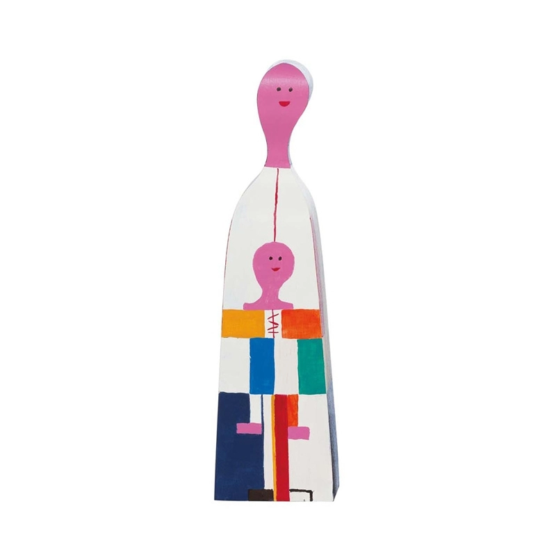 Né en 1907 à New York, Alexander Girard est l’une des figures emblématiques du design américain de l’après-guerre. Architecte de formation, il est longtemps resté dans l’ombre avant de prendre la direction de la division tissus et textiles de l’éditeur Herman Miller, pour qui il créa une multitude de tissus aux couleurs vives, avec un goût prononcé pour les motifs géométriques et les formes abstraites. Ses inspirations puisent leurs racines dans ses voyages et découvertes à travers le monde. Il est également lié d’amitié avec les designers George Nelson et le couple Charles & Ray Eames. Alexander Girard se distingue par ses créations de mobilier ainsi que par ses séries de personnages décalés en bois, surnommés « Wooden Dolls » ou « Figurine Dolls ». Aujourd’hui édité par Vitra, son travail continue de résonner dans le monde du design. En 1962, avec l’aide de sa femme, il crée la Fondation Girard, qui recense une collection de plus de 100 000 pièces. Après sa disparition en 1993, ses héritiers font don de ses archives, comprenant de nombreux croquis, prototypes et échantillons, au Vitra Design Museum.