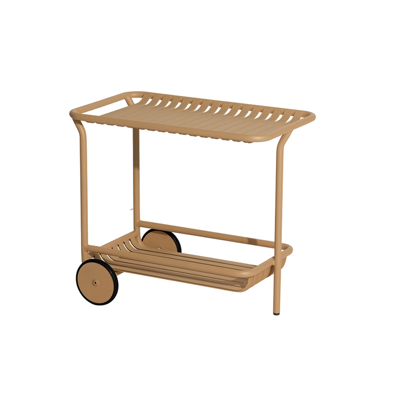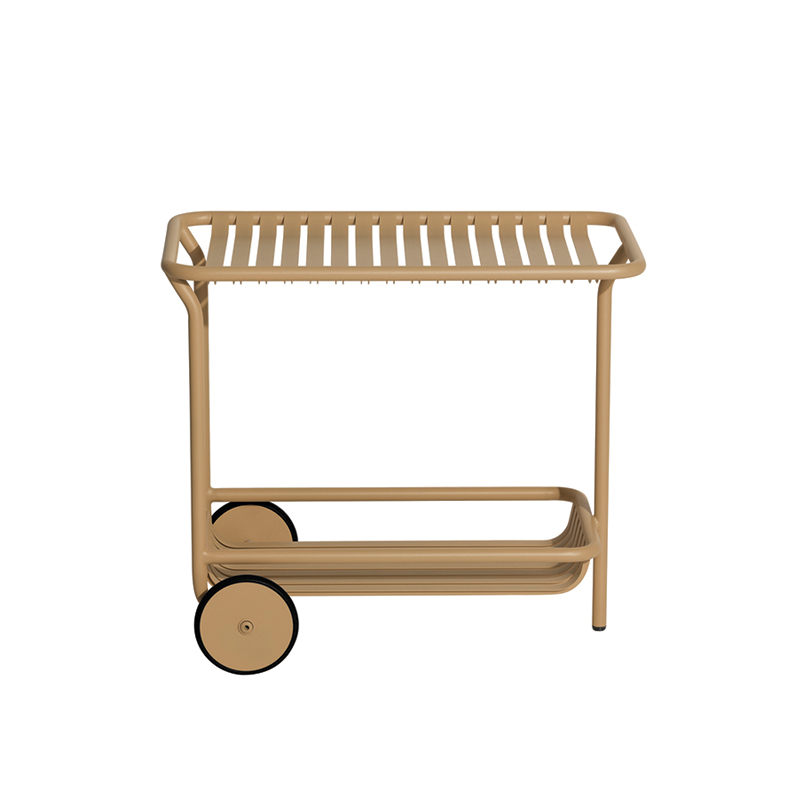 Avec Week-End, la marque française Petite Friture pose son regard singulier sur l’été et propose avec le studio Brichet-Ziegler une approche graphique et contemporaine du mobilier de jardin. La collection Week-End est une gamme de mobilier outdoor complète. Les couleurs précises sélectionnées pour cette collection marquent seules ou en combinaison les lignes d’horizon d’un balcon, d’une terrasse ou d’un jardin. Reprenant les bandes caractéristiques de la collection, cette desserte est disponible en plusieurs couleurs comme le noir, jaune, vert jade … La mise en couleurs de la collection Week-end, de Petite Friture, en peinture poudre époxy anti-UV grainée garantit un maintien impeccable des teintes au cours du temps. La desserte proposée par Petite Friture, a été conçue avec l’obsession de tirer le meilleur parti des matériaux et des techniques de réalisation à la disposition des designers. Réalisée en aluminium, matériau sélectionné pour sa légèreté et sa résistance aux intempéries, la collection Week-End allie confort esthétique et sens pratique.
