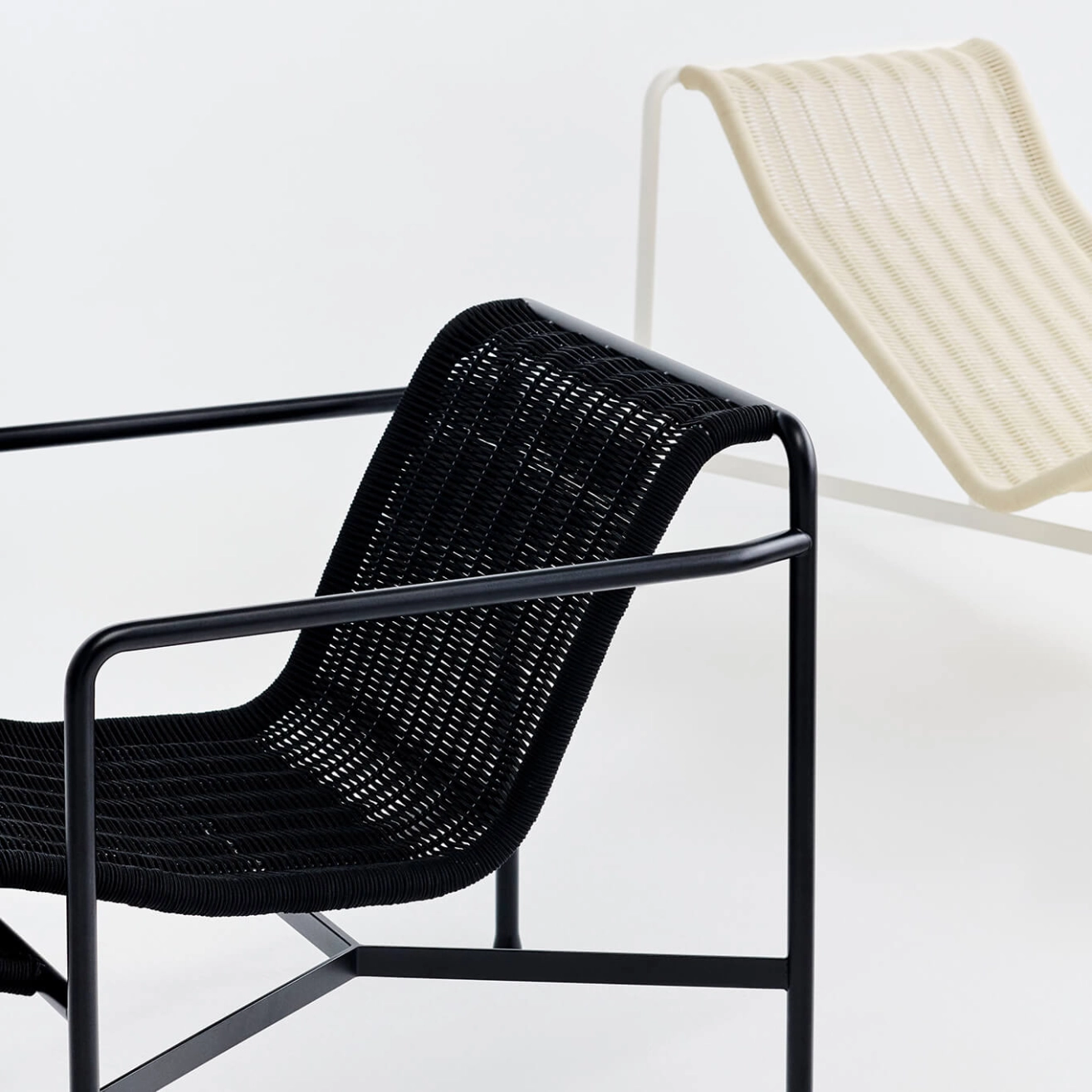 Unie par une géométrie symétrique commune, la collection de mobilier d'extérieur Palissade Cord est pensée pour s'intégrer parfaitement dans des cadres naturels et urbains. La chaise lounge basPalissade Cord s'inspire du design de la collection originale, en apportant une expression plus douce tout en préservant la simplicité visuelle et la solidité qui définissent Palissade Cord. Un cordon en polyester recyclé est soigneusement tissé à la main sur le cadre en acier revêtu de poudre, dans une teinte assortie, offrant ainsi une assise confortable et durable. Grâce à sa palette de couleurs variée et à son design intemporel, cette chaise est parfait pour une multitude d'espaces extérieurs, des cafés et restaurants aux jardins, terrasses et balcons.