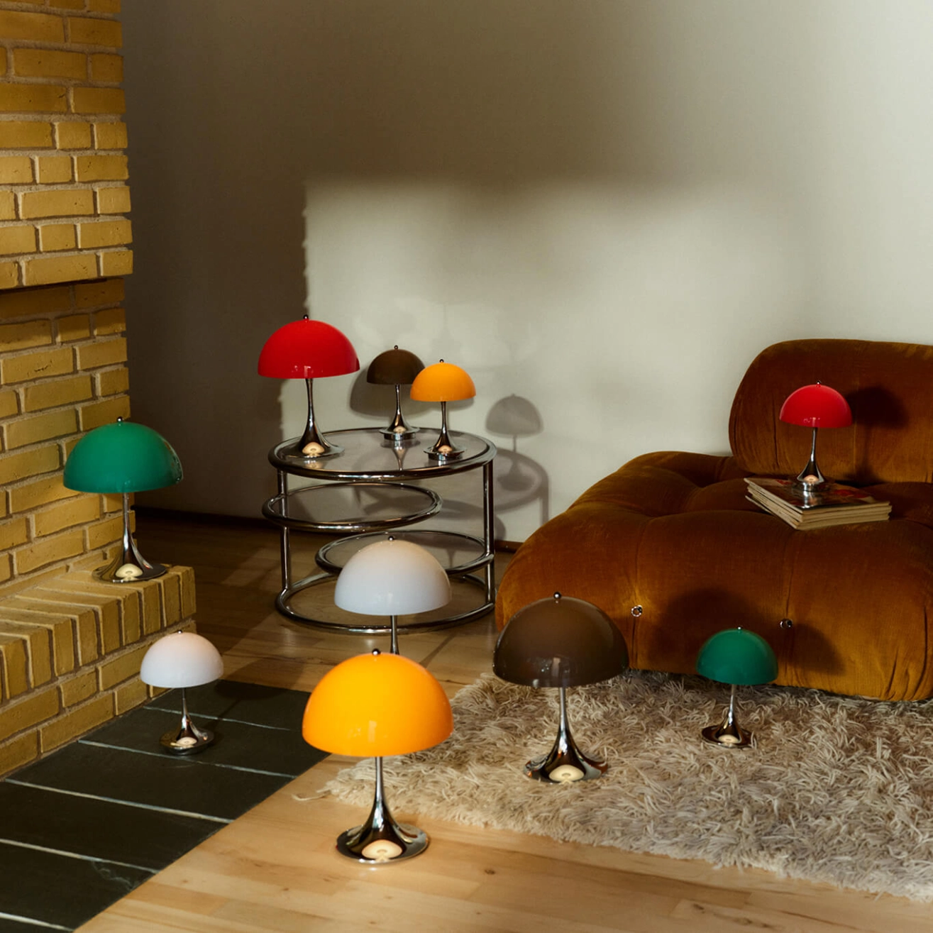 Panthella portable est une version réduite de la célèbre lampe de table Panthella. La lampe mesure seulement 160 mm de diamètre, ce qui en fait la taille parfaite pour la porter d’une pièce à l’autre ou à l’extérieur sur le balcon ou dans le jardin, où elle sera magnifique et créera une ambiance merveilleuse. Avec la Panthella, Verner Panton souhaitait créer une lampe dont le socle et l’abat-jour faisaient office de réflecteur, en faisant appel aux formes organiques qui ont fait sa réputation. Panton a réussi à fabriquer la lampe Panthella avec Louis Poulsen en 1971. La forme caractéristique de la lampe et sa capacité à réfléchir la lumière douce de sa base en forme de trompette ont consolidé son statut d’icône du design. La lampe Panthella Portable V3 est fournie avec un câble USB-C, et propose trois niveaux de luminosité.
