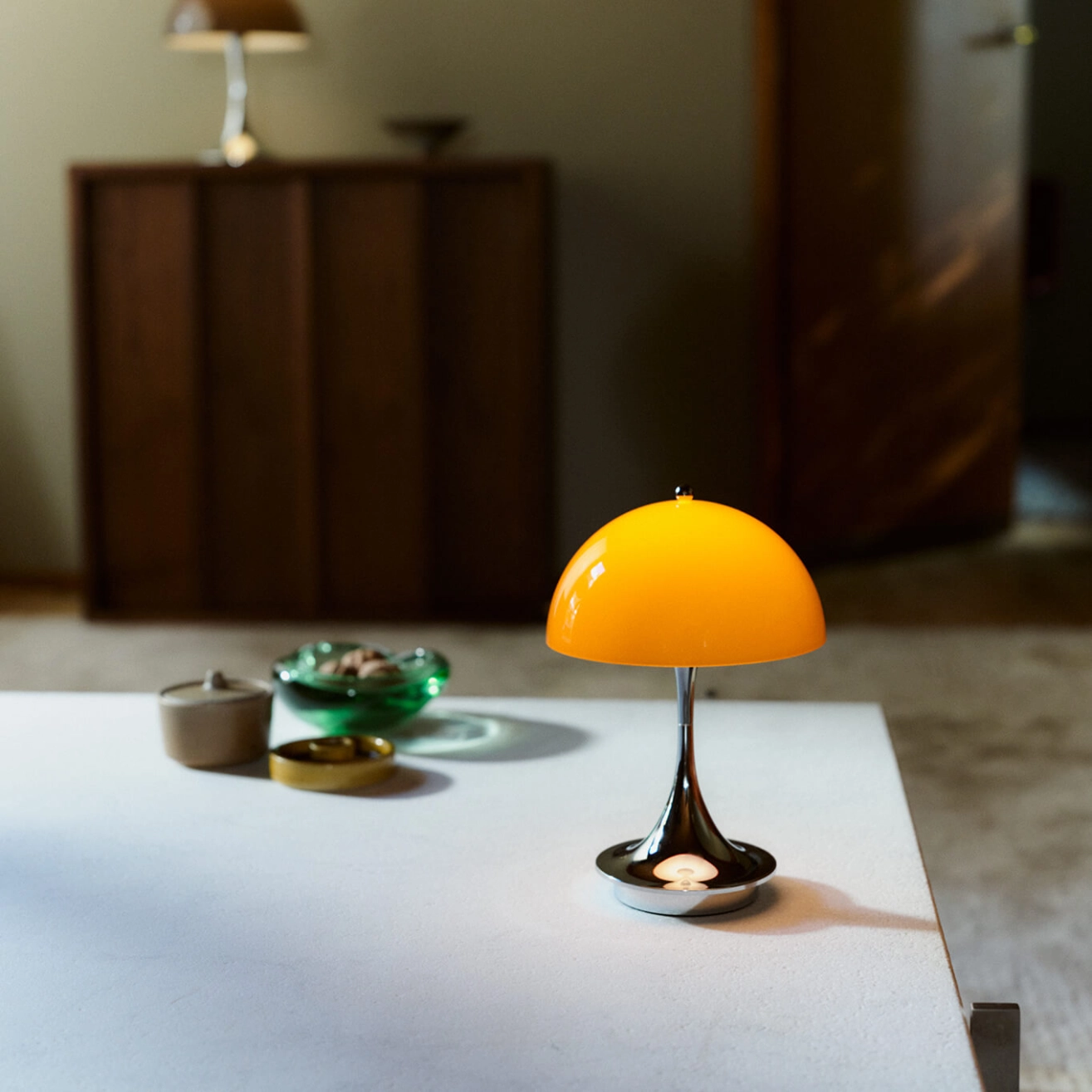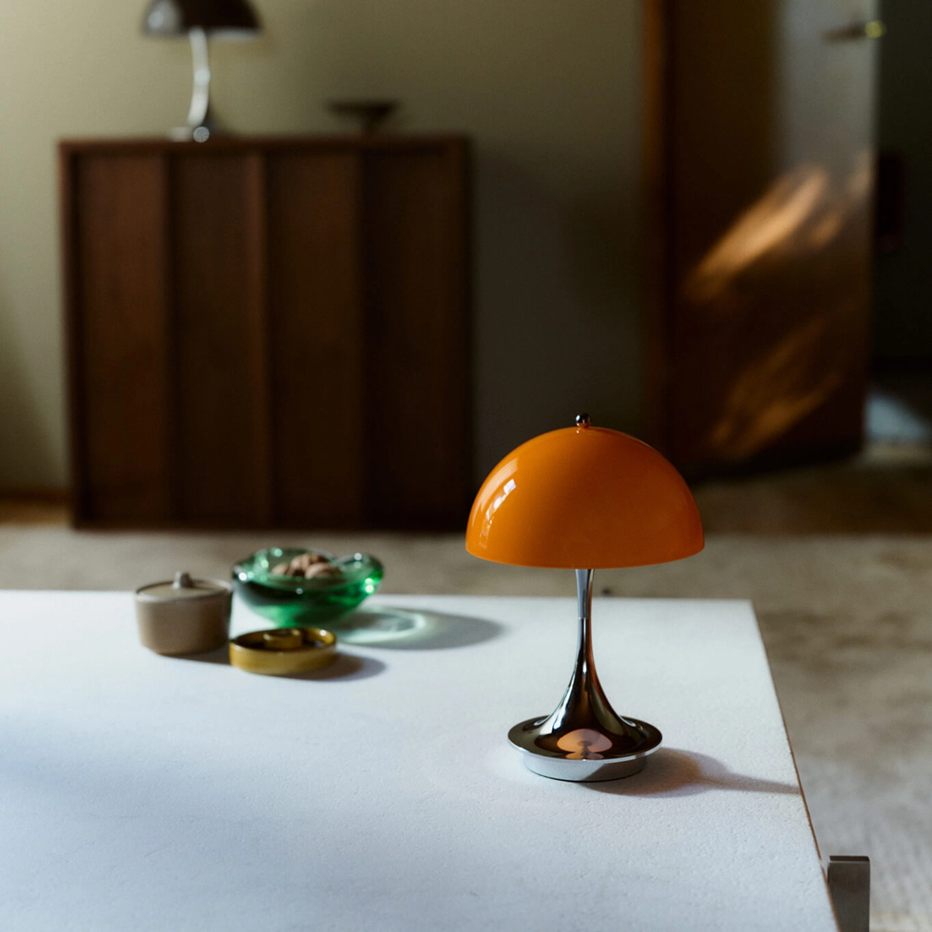 Lampe sans fil PANTHELLA 160 PORTABLE V3 Orange opale/ chrome LOUIS POULSEN