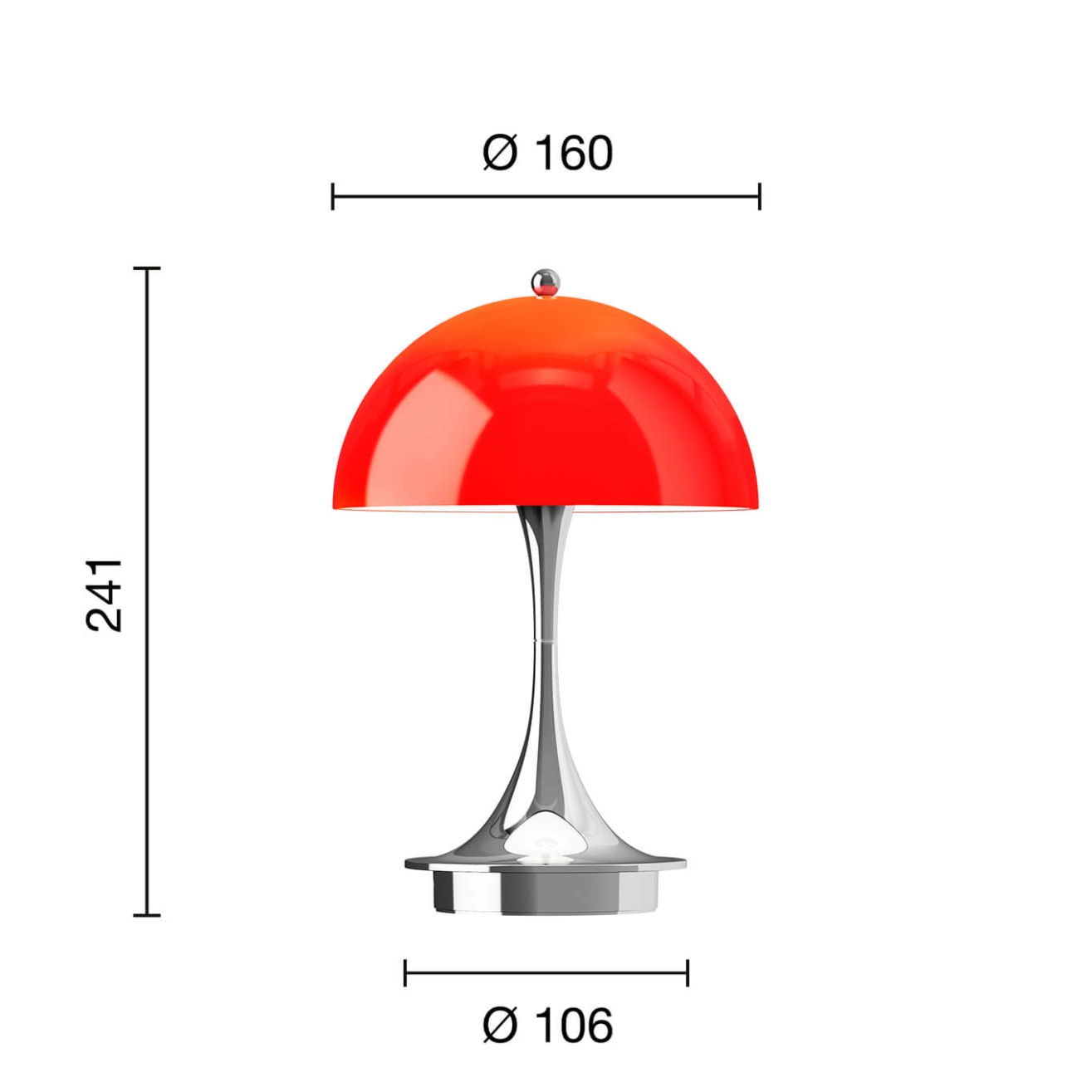 Lampe sans fil PANTHELLA 160 PORTABLE V3 Rouge opale/ chrome LOUIS POULSEN