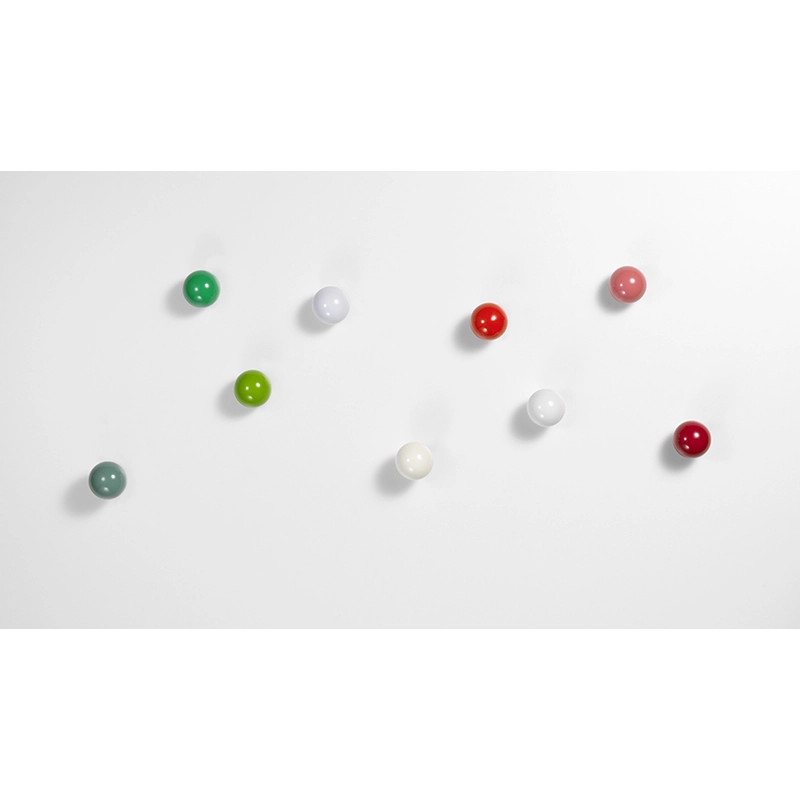 Dessinées par Hella Jongerius pour Vitra, les patères Coat Dots sont de petites boules en bois colorées qui se fixent au mur, créant des accents joyeux dans les cuisines et les salles de bains, ainsi que dans les espaces d‘entrée et les vestiaires. Les Coat Dots peuvent créer d‘attrayantes sculptures murales ou être utilisée en tant que patères. Chaque boule est montée sur une tige en aluminium extensible pouvant être tirée légèrement hors du mur et former un crochet pratique pour manteaux, vestes ou cintres.